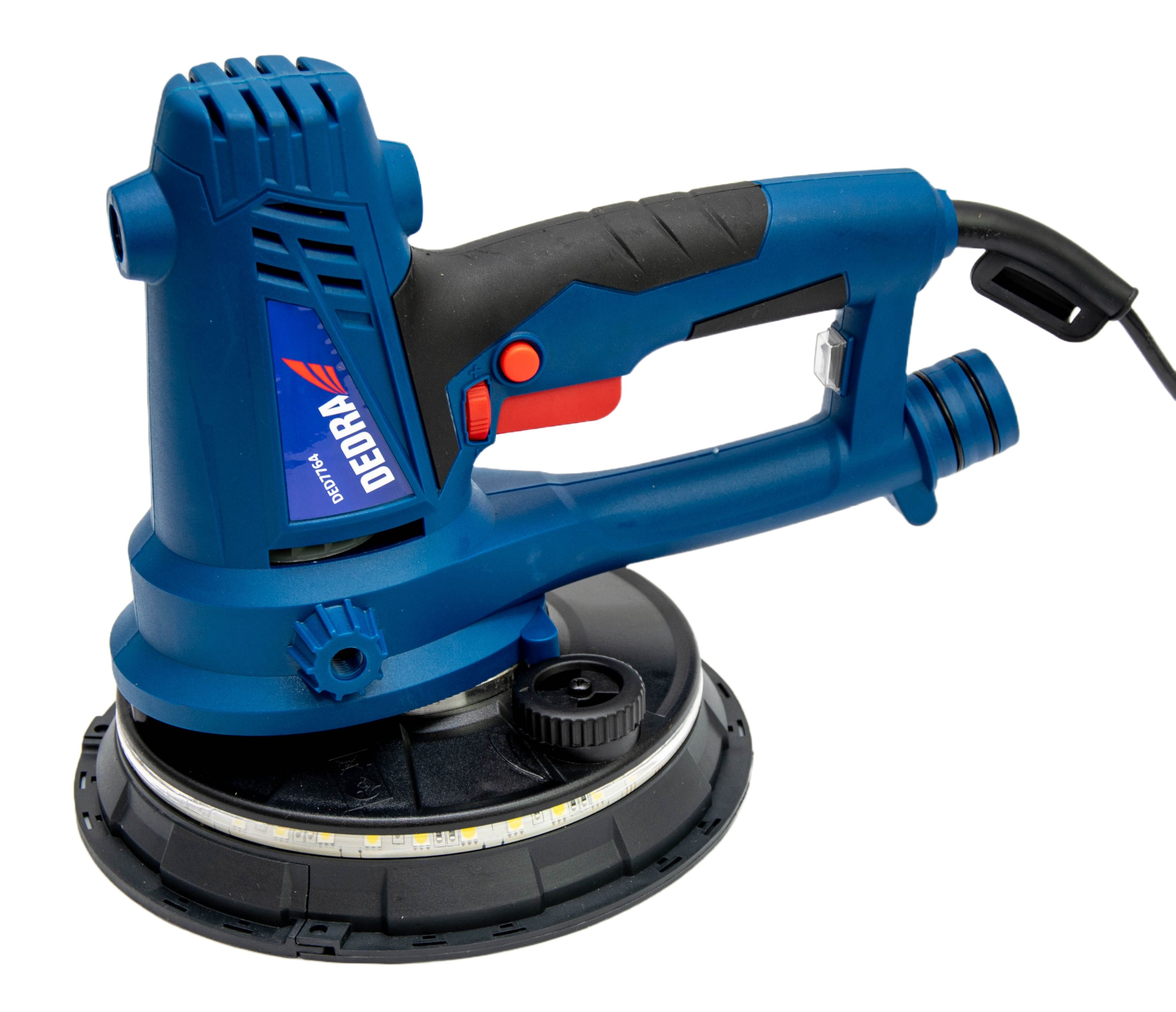 Шлифовальная машина DED7764 предназначена для шлифовки стен и потолков из гипсокартонных листов, покрытых гипсовой штукатуркой. Он оснащен светодиодной подсветкой на 360° вокруг абразивного диска, поэтому нет необходимости использовать дополнительные галогенные лампы для освещения стены. Использование наждачной бумаги соответствующей зернистости также позволяет удалять краску и клей со штукатурки и металлических поверхностей.