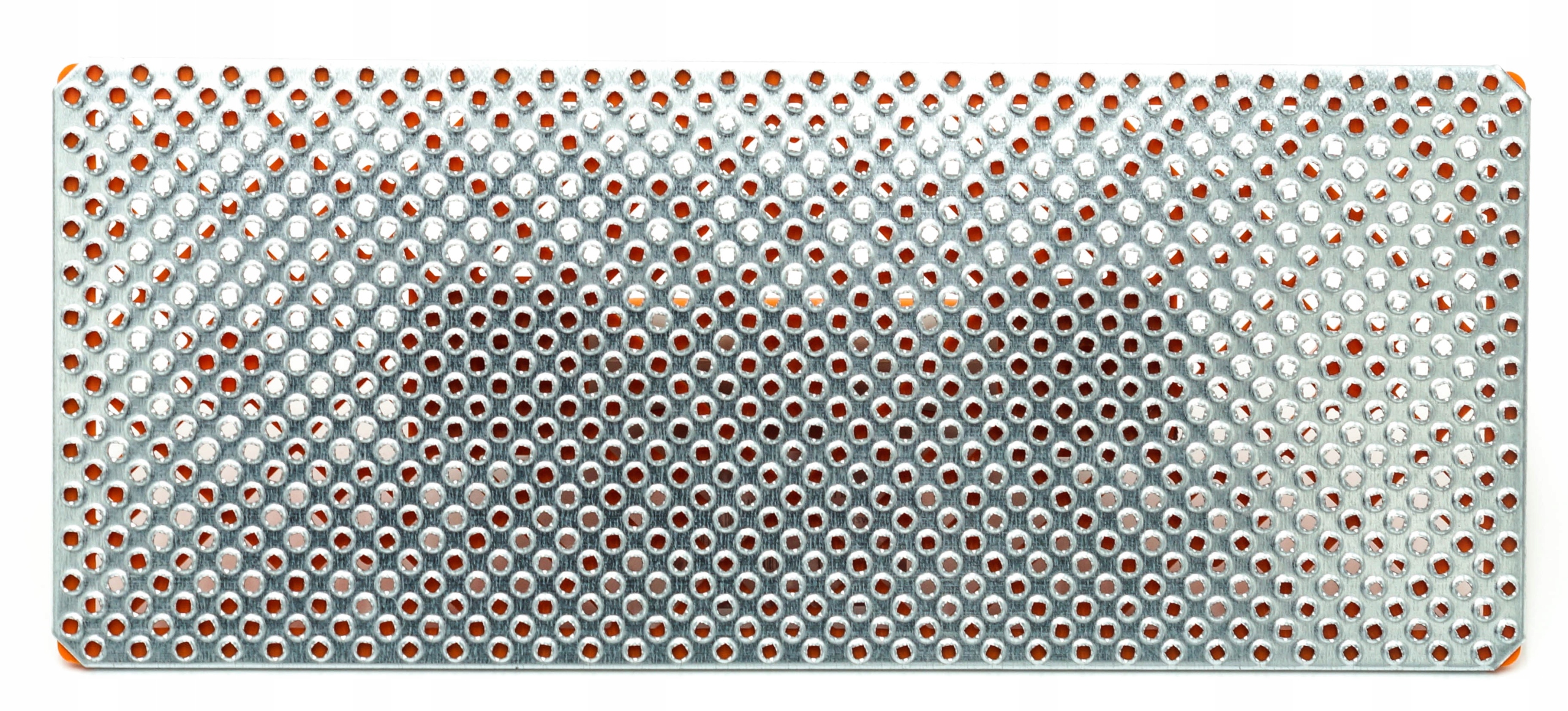 Нашивка из пластика, усиленный верх, с решеткой с большими отверстиями для удаления истертого материала. Рабочая часть терки изготовлена из оцинкованного листового металла с острыми отверстиями.