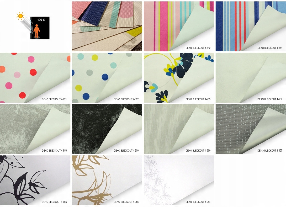 metalic - ткань с металлической серебряной нитью, хорошо покрытие. Ткань, благодаря серебряной нити, обладает свойствами солнечного света, предотвращая комнату, поэтому она идеально подходит для чердака и для использования везде, где у нас есть избыточное солнце. Текстура ткани гладкая и имеет металлический вид. Яркие материалы освещают комнату, поэтому войлочная степень потемнения с яркими цветами составляет около 60%. Чем темнее материал, тем больше потемнение