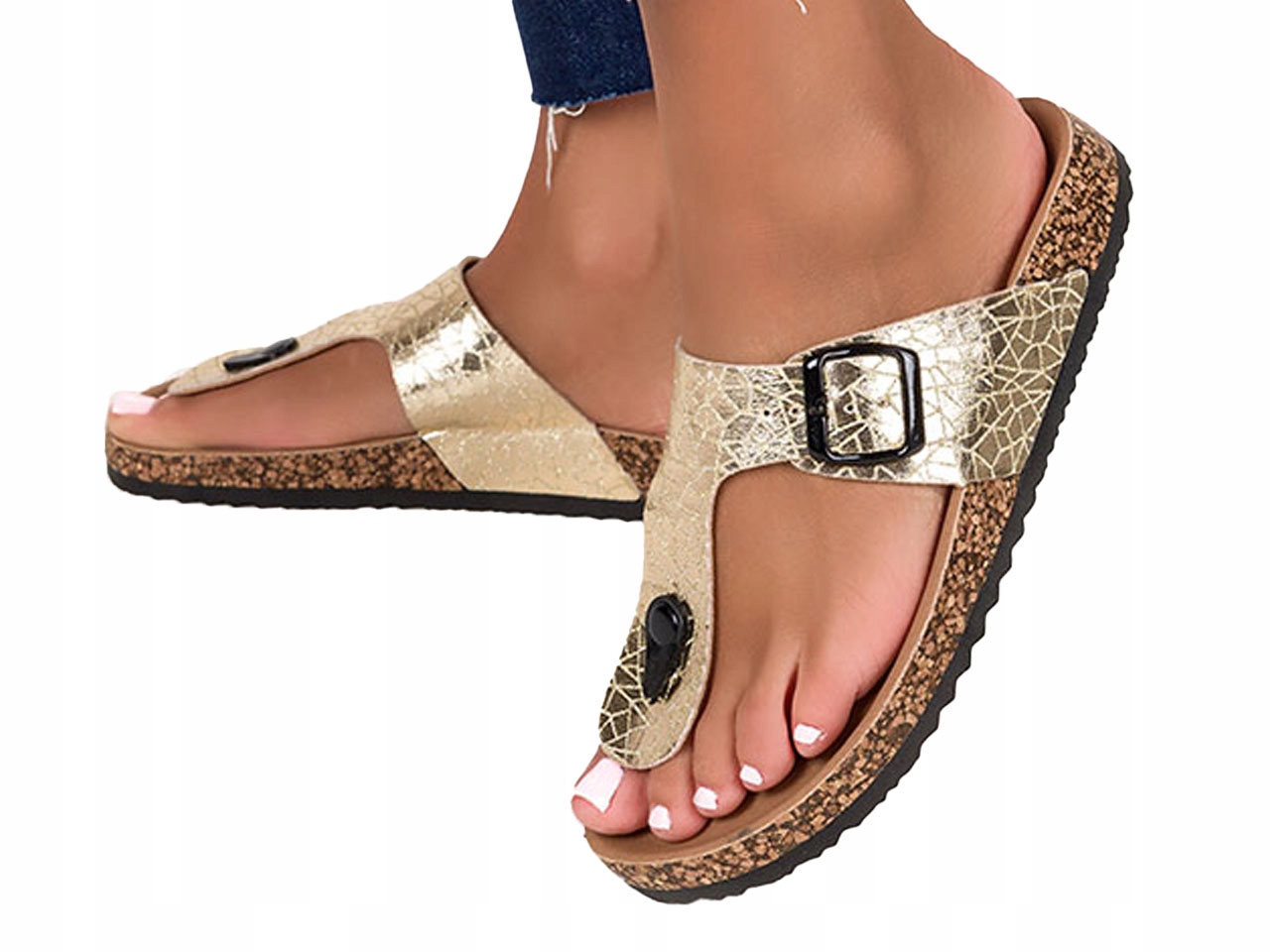 Золотистые блестящие шлепанцы на профилированной пробковой подошве Casu H23X1-G