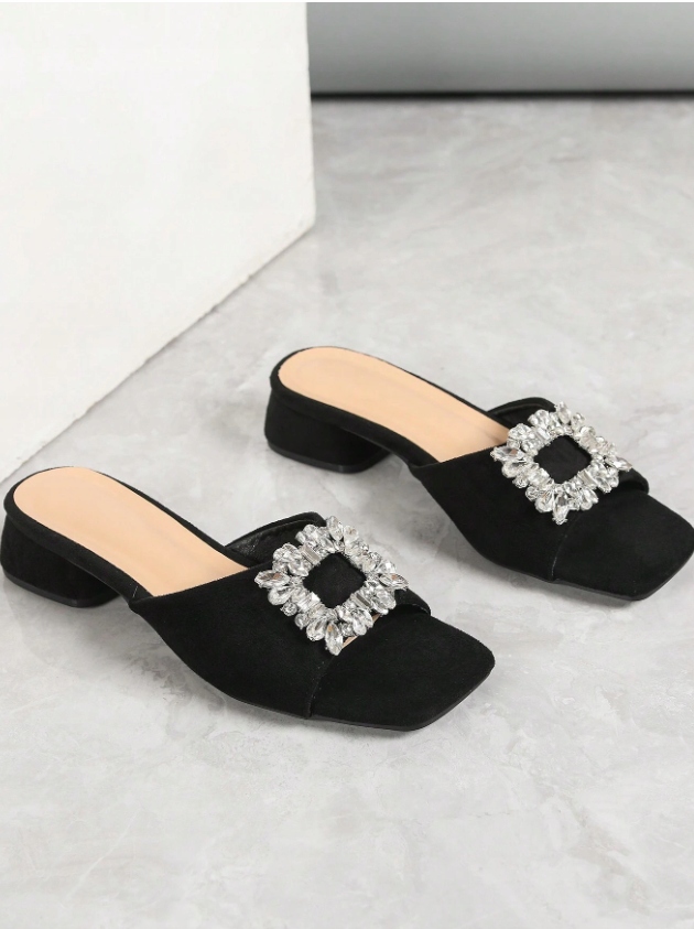 SHEIN ЧЕРНЫЕ КЛАССИЧЕСКИЕ ШЛЕПАНЦЫ С ДЕКОРАТИВНОЙ ЗАКРЫТКОЙ ИЗ ЦИРКОНИЯ 43 1 ГБ