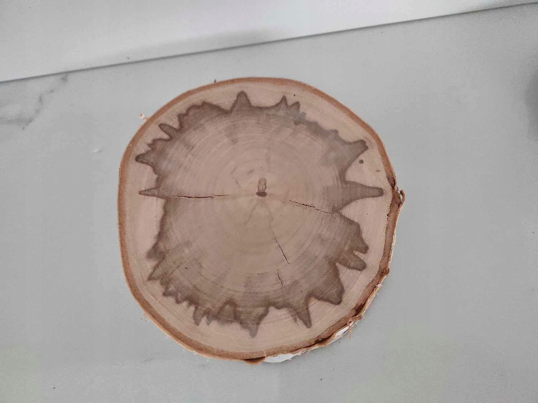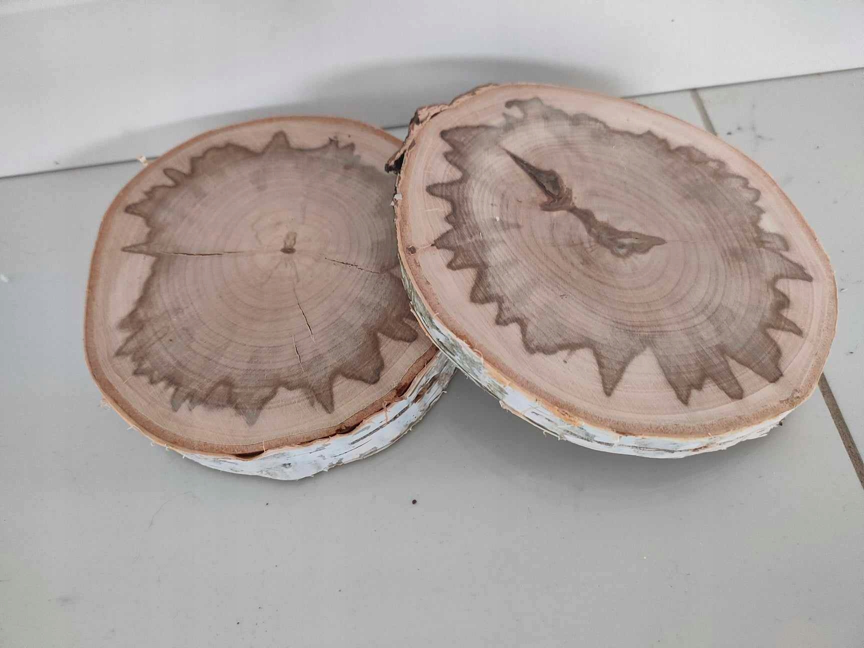 от 14 до 16 см см, толщина около 2 см. Срезы могут иметь естественные небольшие трещины. Диск может отличаться от этого на фотографии, он может иметь темную или светлую кору, может иметь минимальные дефекты коры.