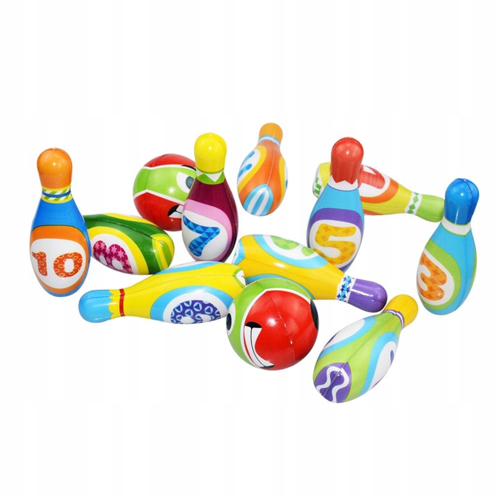 Minikt Blove для детей для детей в ярких цветах, 10 мисок с печатными номерами и 2 шариками для боулинга с мультипликационными узорами