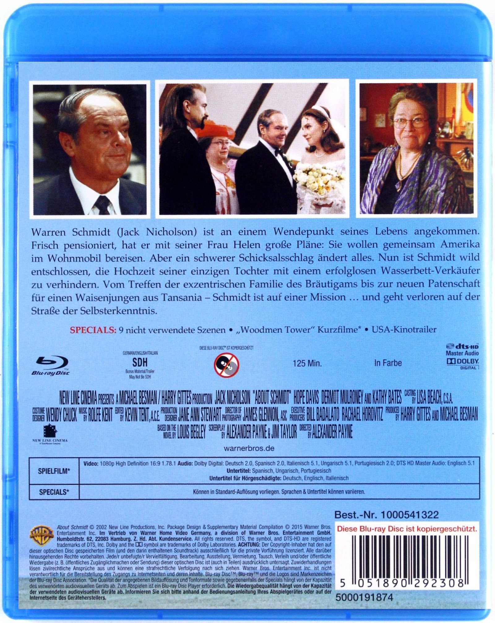 Уоррен Шмидт — 60-летний мужчина, оказавшийся на жизненном распутье. После многих лет самоотверженной работы в одной компании он уходит на пенсию, из-за чего чувствует себя совершенно потерянным. По словам Варенна, его дочь планирует выйти замуж совершенно не за того парня. Ситуация достигает своего апогея, когда после 42 лет брака умирает жена Шмидта. Лишенный жены, семьи и работы, Шмидт должен найти новую цель в жизни. Похоже, это будет сделано для того, чтобы помешать его дочери выйти замуж.