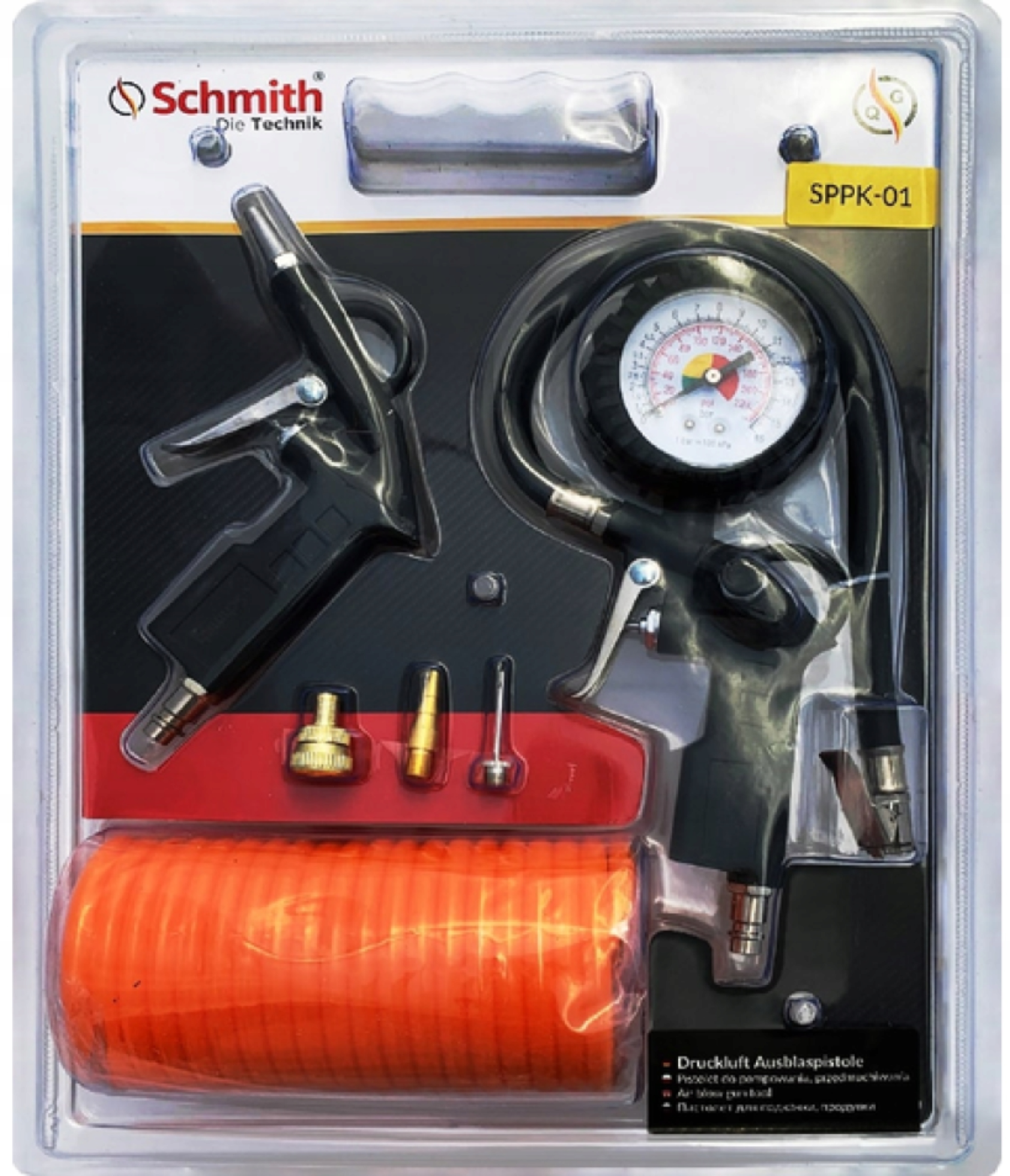 Пневматический комплект является важным дополнением к вашему компрессору. В комплект входят, среди прочего: пистолет для продувки и пистолет для накачки шин с манометром. Отдельные элементы изготовлены из прочных и устойчивых к повреждениям материалов и рассчитаны на то, чтобы прослужить как можно дольше в исходном состоянии.: