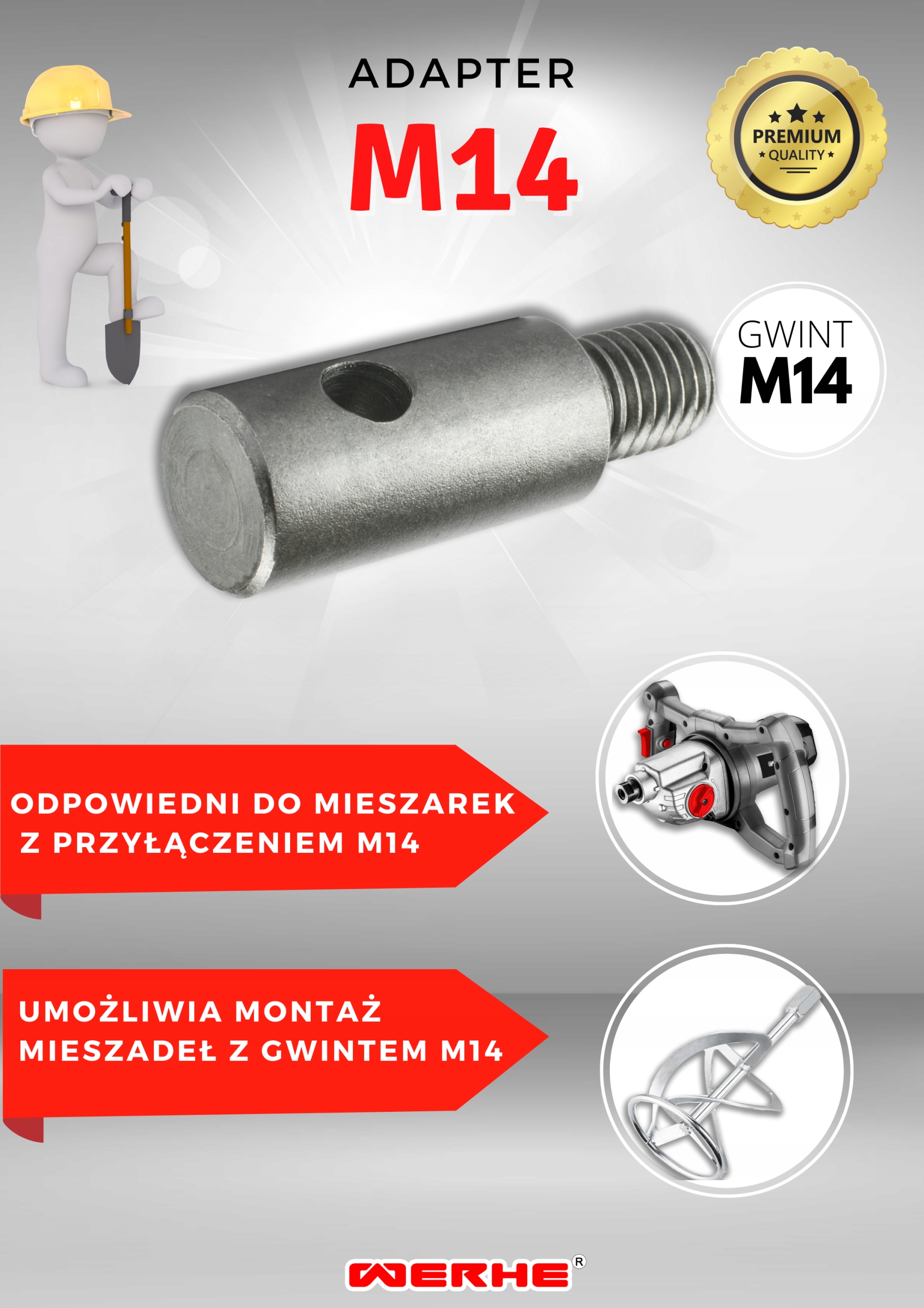 Купив переходник М14 для миксера, вы сможете использовать это оборудование для бурение колодцев, рытье столбов, заборов, деревьев. Вы также можете использовать его для поддомкрачивания под тротуарами или дорогами, чтобы протянуть кабель или трубу.
