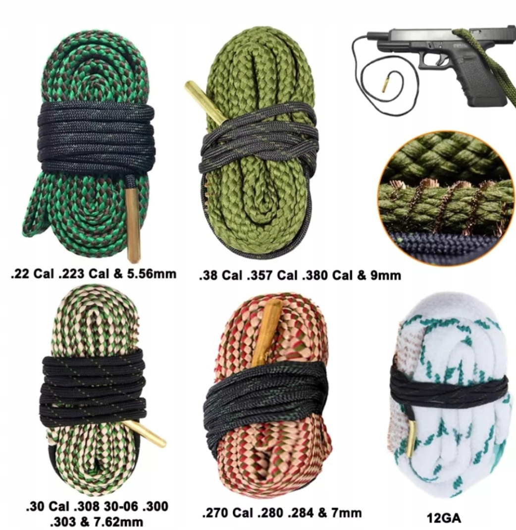 - Шнур для чистки оружия, легкий и компактный, его можно свернуть в карман при походе на стрельбище, а затем использовать несколько раз в любое время, чтобы быстро избавиться от грязи.