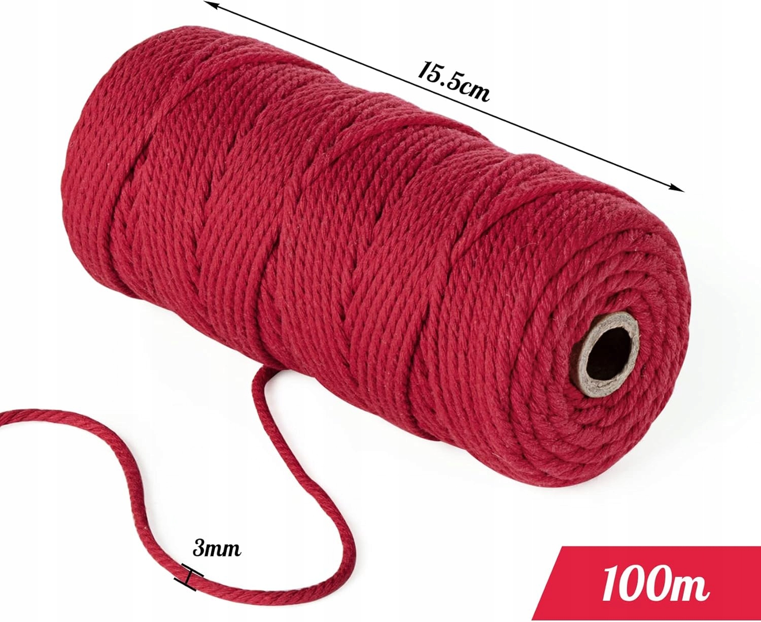 Нитки для макраме из хлопка, 3 мм х 100 м, красные, своими руками