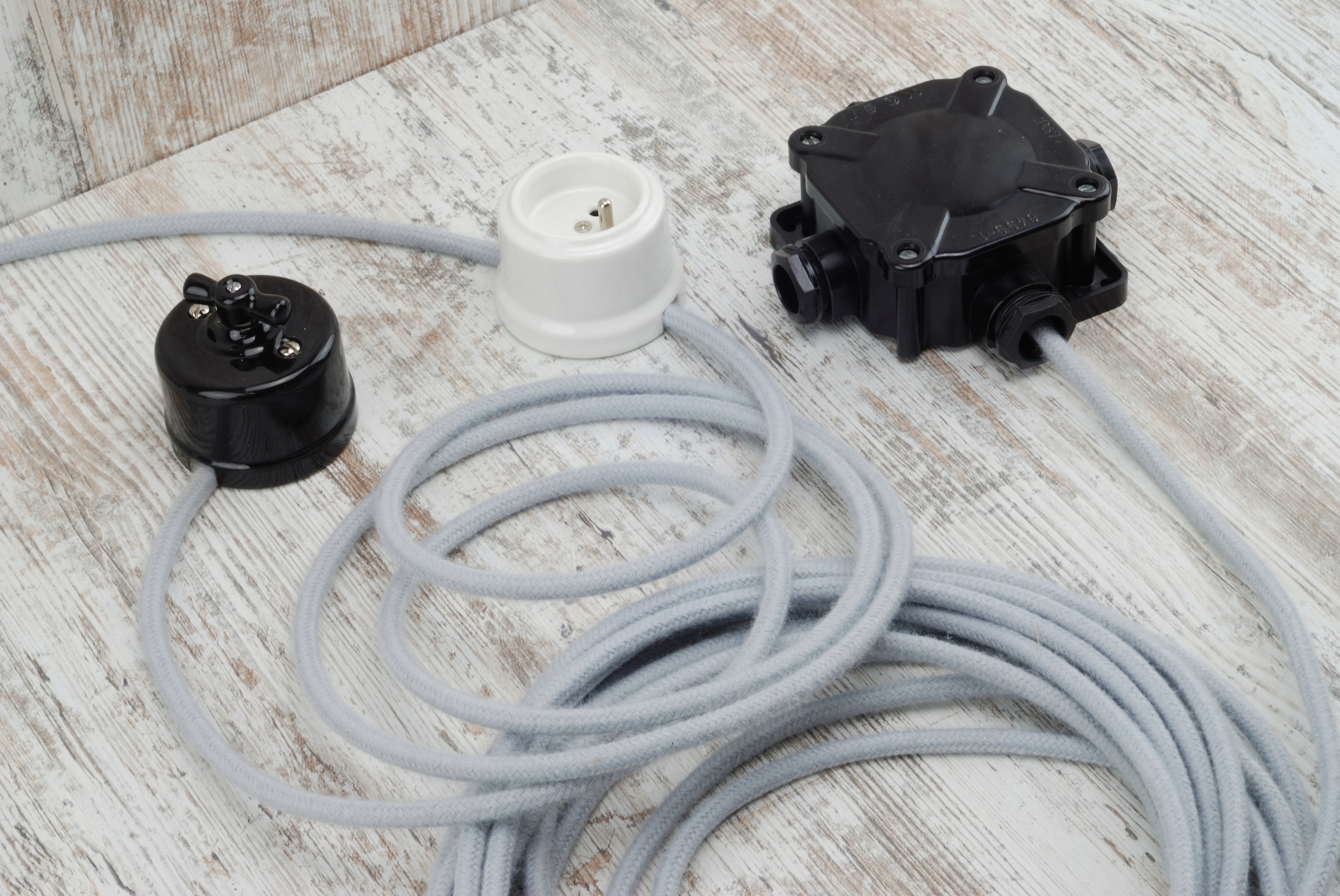 Цвет: светло-серый хлопок (кабель с оплеткой из натуральных волокон)