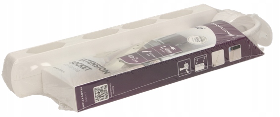 Удлинительный шнур, отделанный плоской пробкой, что облегчает подключение к розеткам, расположенным в трудных местах, например, за мебелью или телевизором. Устройство имеет четыре сетевых розетка с текущими выдержками трека, ручкой, которая позволяет легко вытащить из гнезда и кабель длиной 1,4 м.