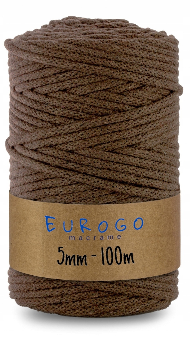 СТРУНА ПЛЕТЕННАЯ ХЛОПКОВАЯ С ПОЛИЭФИРНОЙ СЕРДЦЕЙ ДЛЯ МАКРАМЕ, КОРИЧНЕВАЯ 100м 5мм