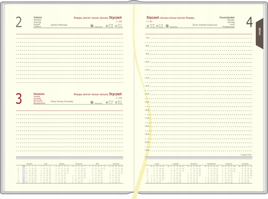 Календарь: PL, EN, DE, RUS, FR, именины и праздники, фазы луны, восходы и закаты, план на весь год внизу календаря
