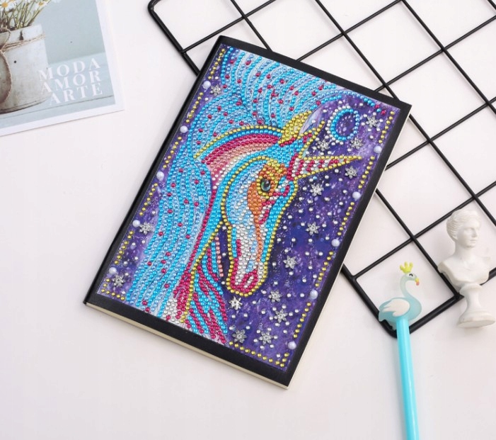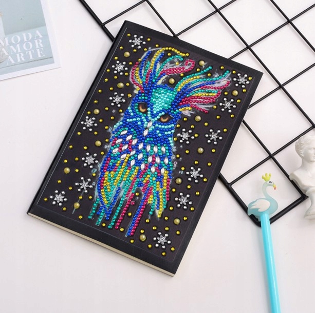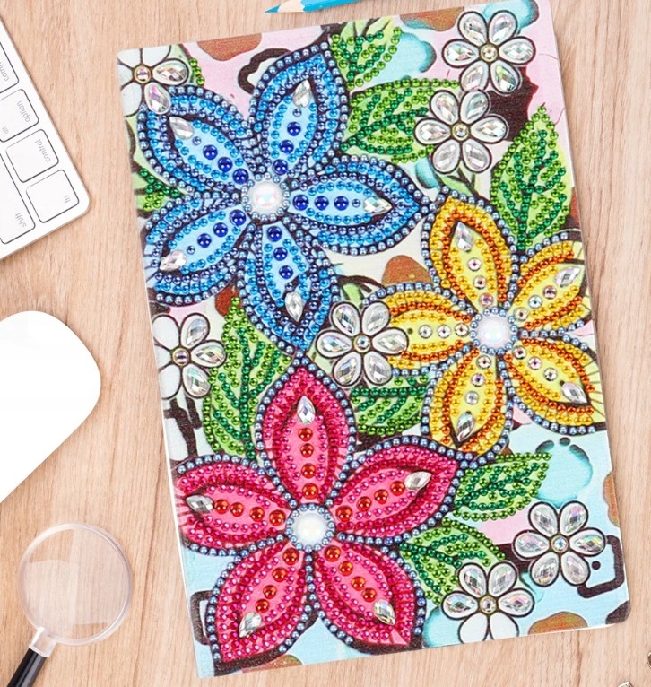 Создайте свою обложку для ежедневника в технике алмазной вышивки. Покройте всю переднюю крышку блестящими кристаллами ярких цветов!
