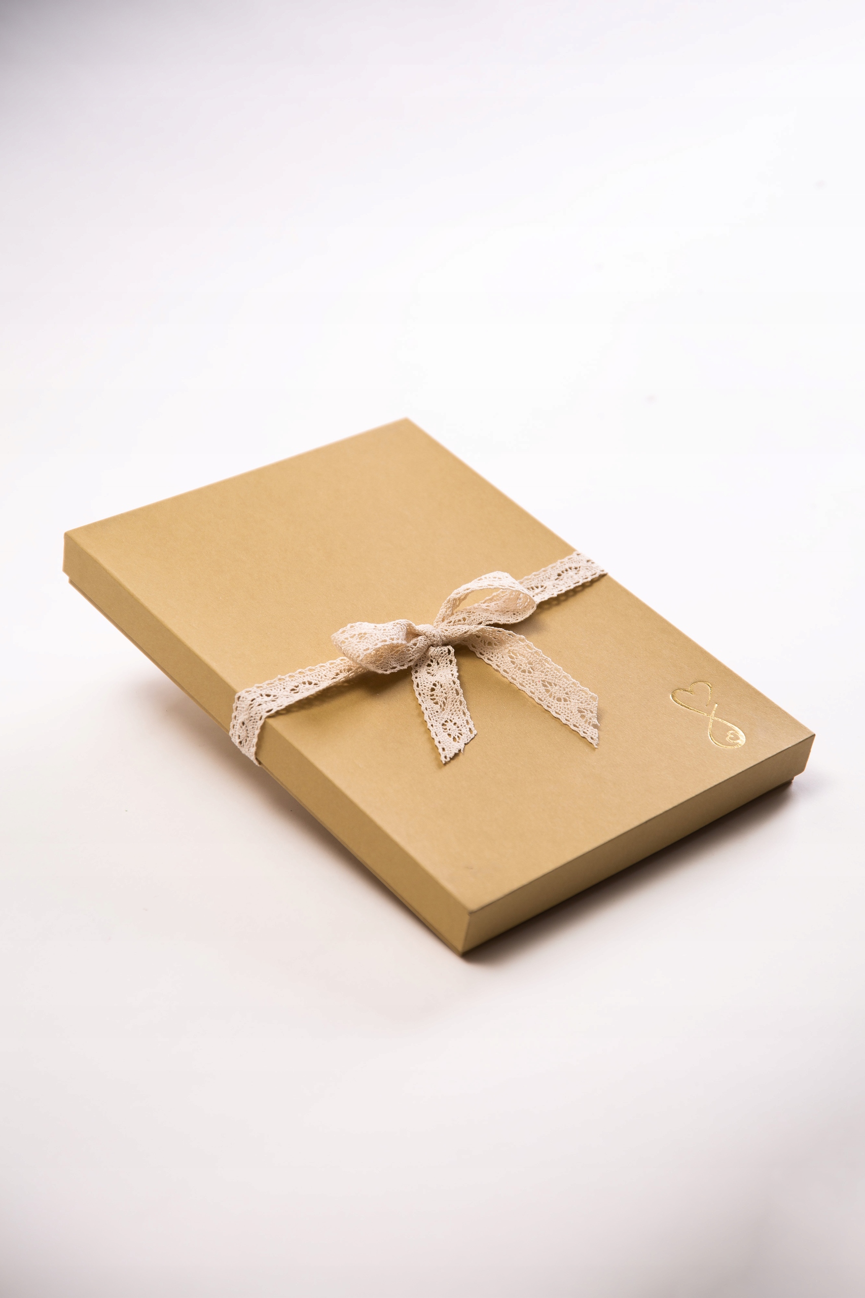 Элегантная коробка, идеально подходящая для дневника «Первые воспоминания». Изготовлен из картона и высококачественной экологической бумаги. Золотое тиснение знака бесконечности и сердца в углу придает ему уникальный характер.