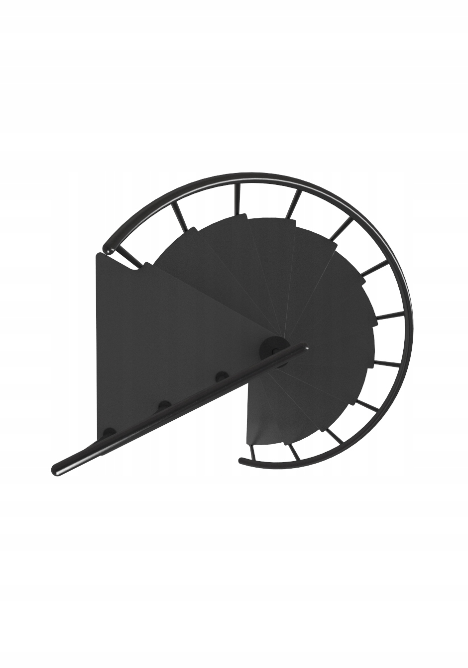 Лестницы со ступенями из бука мультиплекс диаметром 120 см, их конструкция и балюстрада окрашены порошковой краской цвета антрацит (RAL 7016). Лестницы рассчитаны на высоту этажа до 280,8 см.