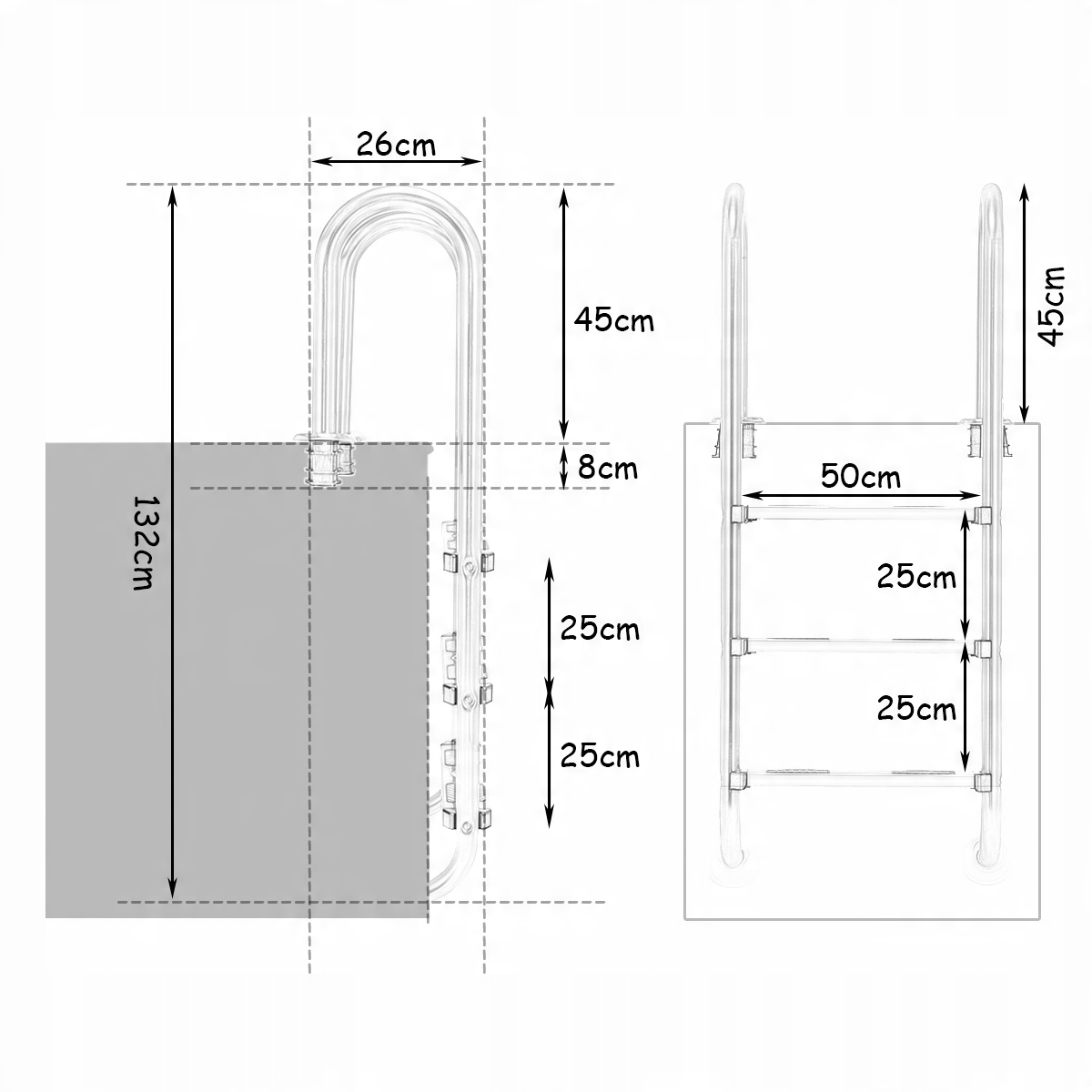 Высококачественные материалы - лестница изготовлена из полированной нержавеющей стали высочайшего качества, что обеспечивает непревзойденную прочность, стабильность и долговечность, а также устойчивость к коррозии