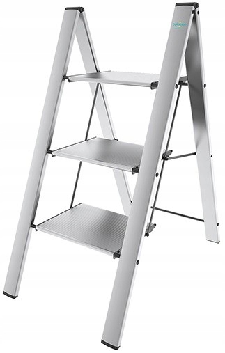 Каждая ступенька лестницы имеет размеры 33x26 см. Благодаря этому мы сможем безопасно поставить всю ногу на ступеньку. Ступени сконструированы таким образом, что вся их поверхностьнескользящая. Волнистая поверхность обеспечивает безопасное перемещение. Благодаря своему весу он очень устойчив и не трясется. По сравнению с дешевыми пластиковыми лестницами
