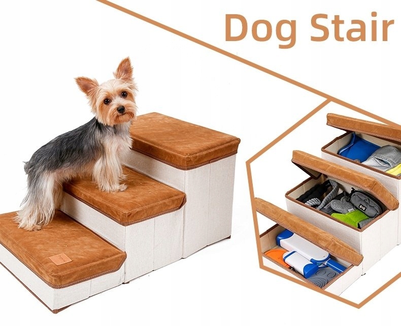 - Ступеньки легко складываются. Кроме того, каждая ступенька также представляет собой отсек для сокровищ, где можно хранить, например, игрушки для собак.