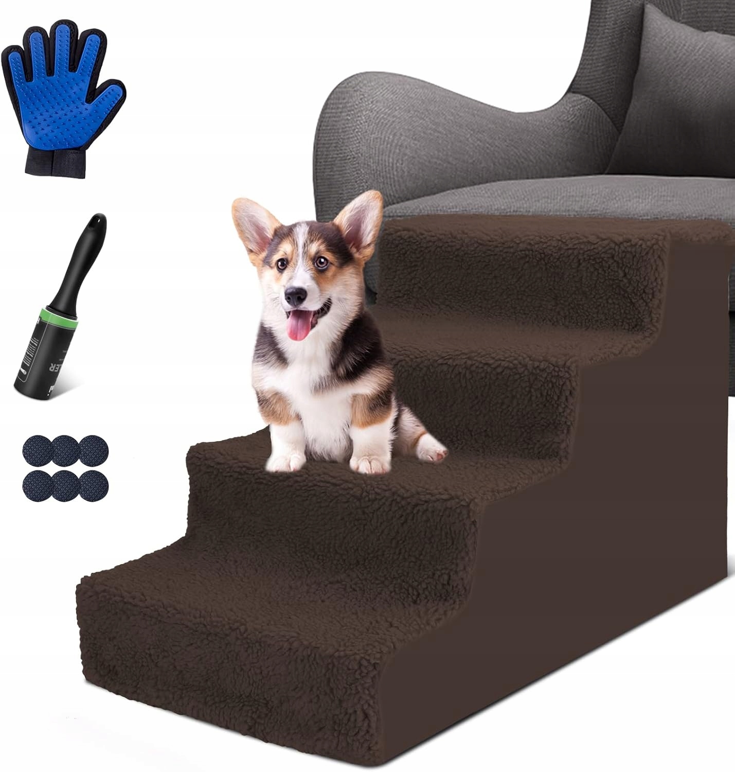 Лестница для животных легко транспортировать, сами должна собираться внутренняя пластиковая ручка, а упаковка не займет много места. После получения товара не требуется никаких инструментов, и сборка может быть сделана с помощью простых шагов. Кроме того, крышка лестницы может быть легко удалена, и его можно промыть вручную и в стиральной машине сотни раз без деформации или исчезновения. Это может быть использовано много раз