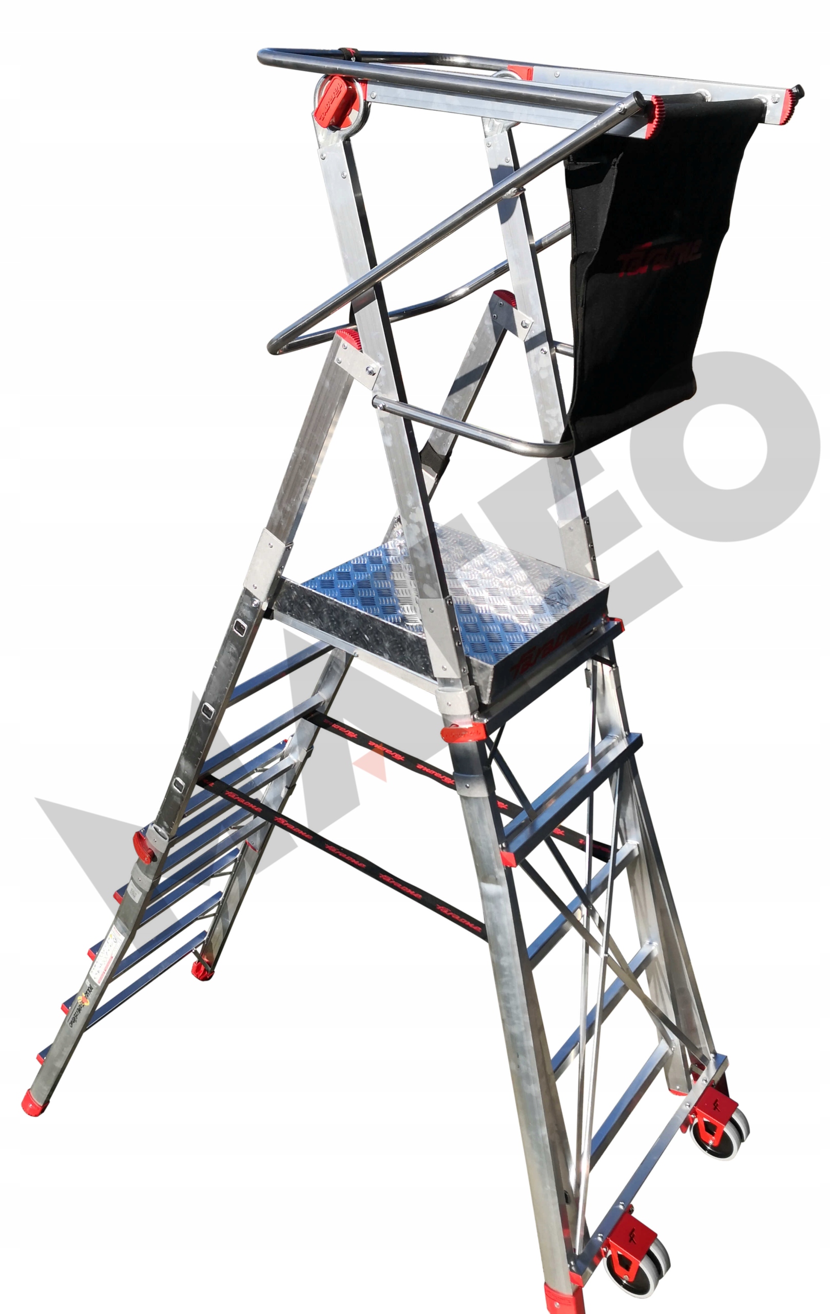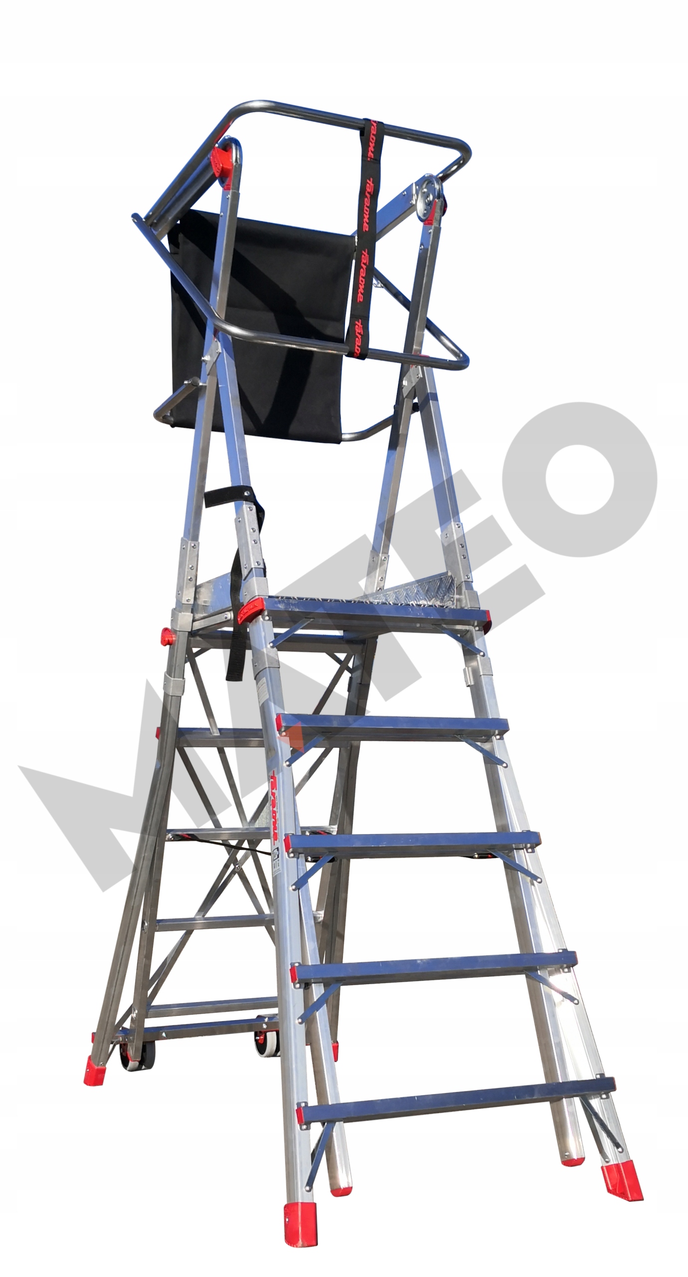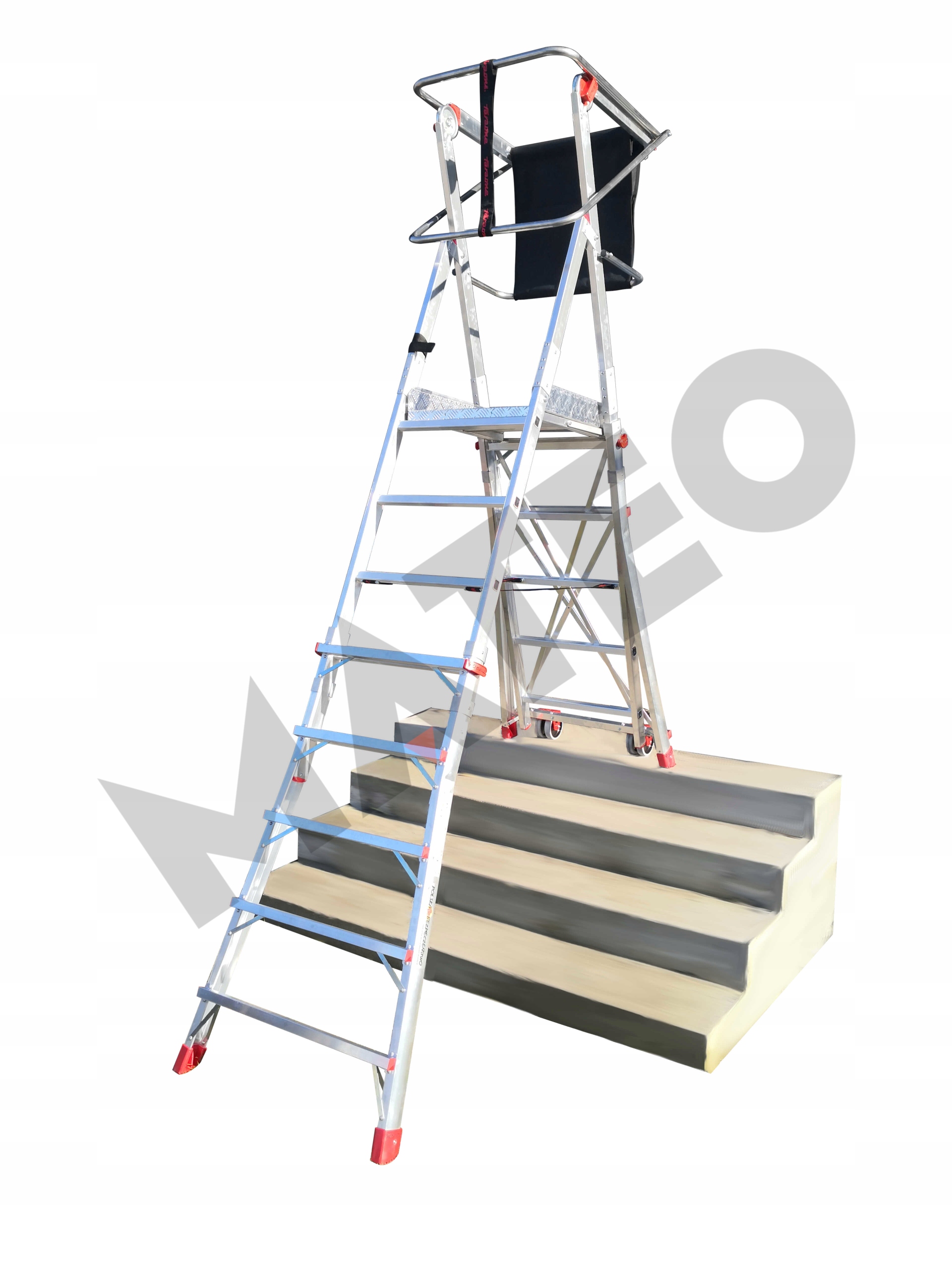 - Оснащена двумя прочными двойными роликами, что позволяет перемещать платформу по сложным поверхностям.