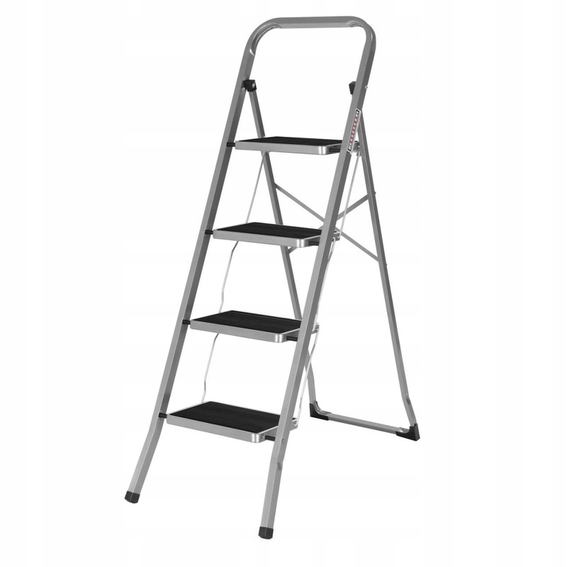 Ручка защиты осени обеспечивает комфорт и повышение безопасности. Ноги имеют особые ноги, которые предотвращают скольжение лестницы по земле. Лестница позволяет вам добраться до высоко расположенных продуктов, облегчает домашнее задание на высотах, является идеальным помощником во время ремонтных работ.
