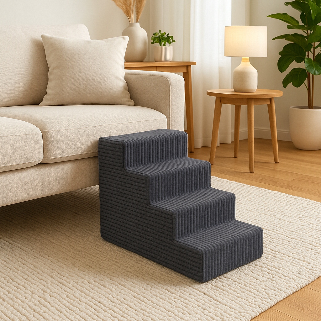 Позаботьтесь о безопасности и комфорте вашего питомца! Наши 4-ступенчатые лестницы для собак и кошек являются идеальным решением для маленьких, пожилых или больных животных, которым трудно подниматься на более высокие поверхности, например, на диван, кровать или кресло.