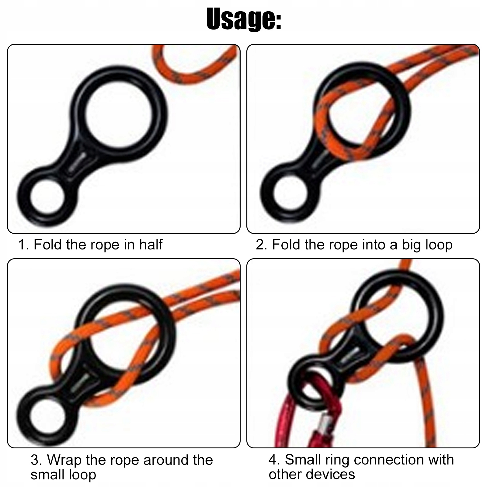 1. Он изготовлен из горячекованого магниево-алюминиевого сплава, легкого и прочного. Конструкция с двумя отверстиями обеспечивает долговечность изделия. 2. Разрывное усилие составляет до 7700 фунтов силы (35 кН/3500 кг) на 360 градусов для обеспечения вашей безопасности. 3. Сведите к минимуму трение между веревкой и устройством, чтобы веревка плавно двигалась при спуске или страховочной веревке. 4. Основное отверстие достаточно велико, чтобы веревку можно было сложить вдвое или втрое, чтобы увеличить трение, что обеспечивает медленный спуск или лучший контроль спуска. 5, широко используется, подходит для защиты, скалолазания, альпинизма, спелеологии, рубки деревьев, парусного спорта, мытья окон и высотных работ.