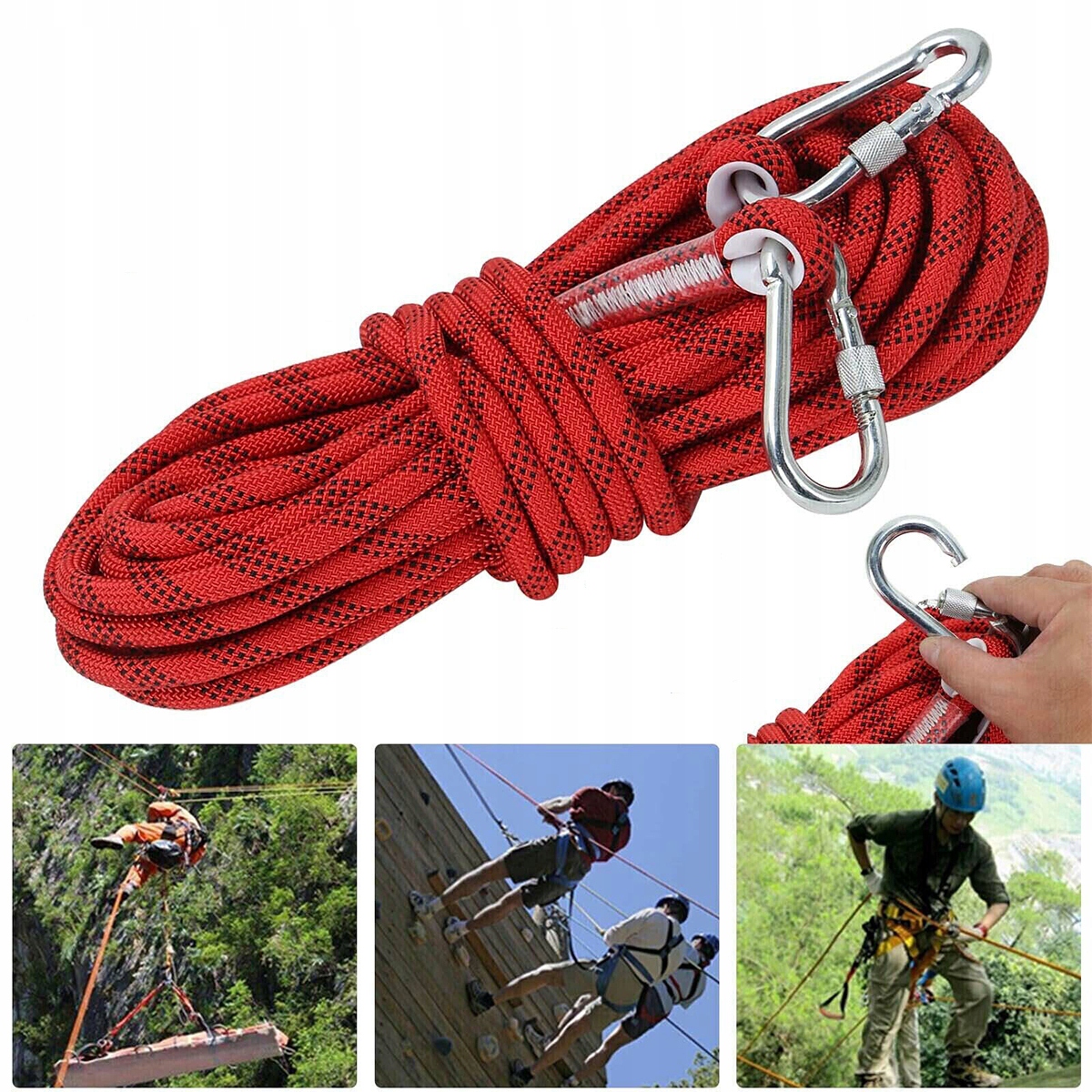 , изготовленный из усиленного полиэфирного волокна и нейлона, эта скалолазаная веревка с ядром прочная, прочная и устойчива к слезам, длится долгое время. С прочным, вшитым зажимом и карабинером из лживой стали.