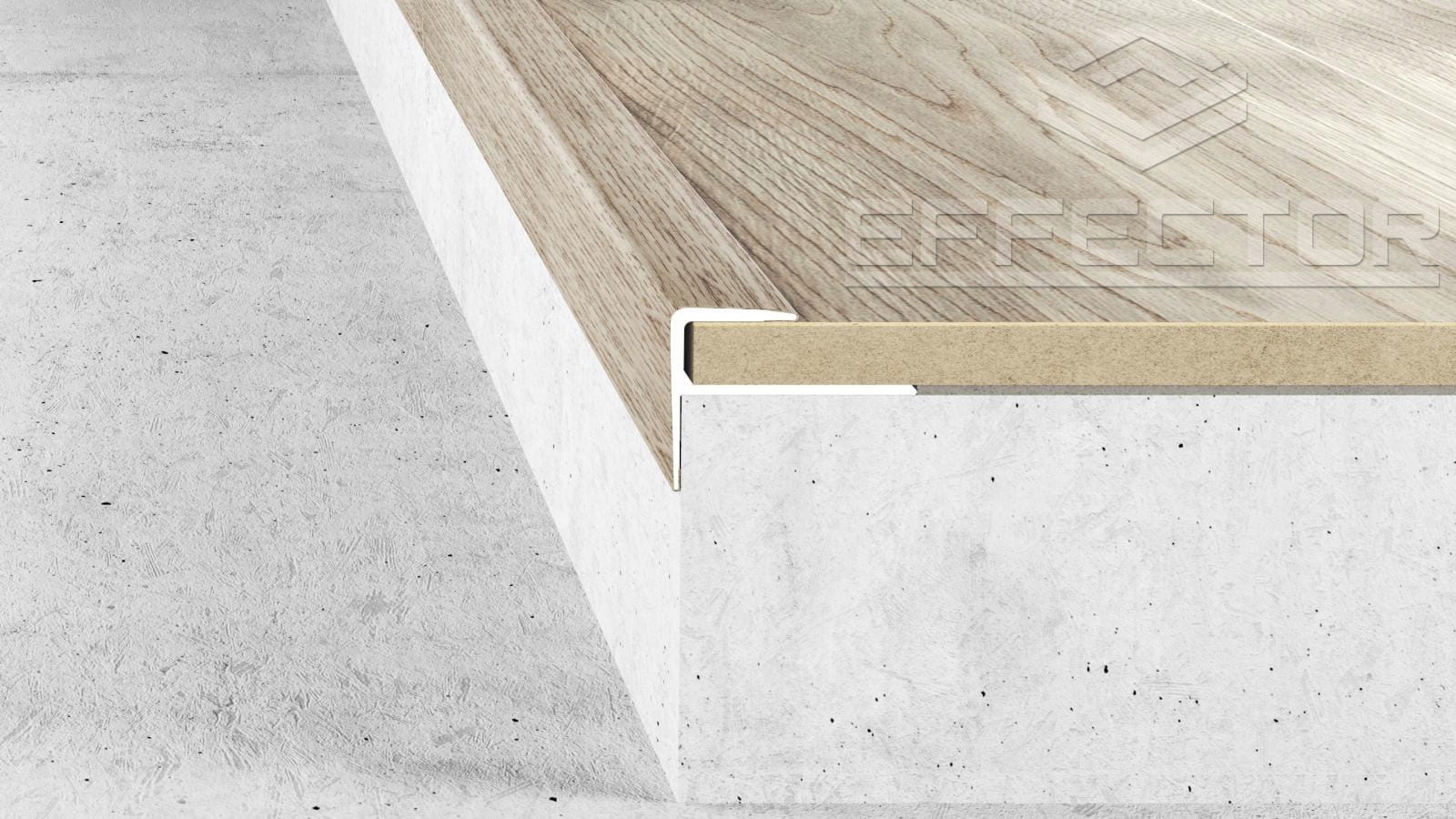 Согрейте свой интерьер и придайте краям лестницы нежную, но прочную отделку. Лестничная планка А60 благородного цвета Шампань – идеальное решение для элегантной отделки ступеней и площадок из напольных панелей толщиной до 8 мм.