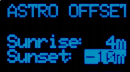 Вишенкой на торте являются АСТРОНОМИЧЕСКИЕ ЧАСЫ. Контроллер может управлять освещением от заката до восхода солнца без использования датчика сумерек. Это означает, что рабочее время меняется каждый день. Более того, мы можем переместить эти рабочие точки, если хотим, чтобы лестница работала, например, за 20 минут до восхода солнца.