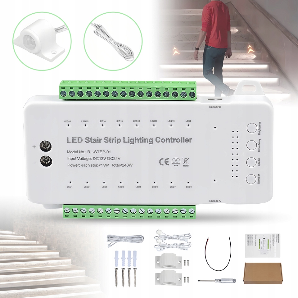 LED PIR ЛЕСТНИЧНЫЙ КОНТРОЛЛЕР КАСКАДНЫЙ ДАТЧИК 16 LED ЛЕСТНИЦЫ 240Вт 12В 24В