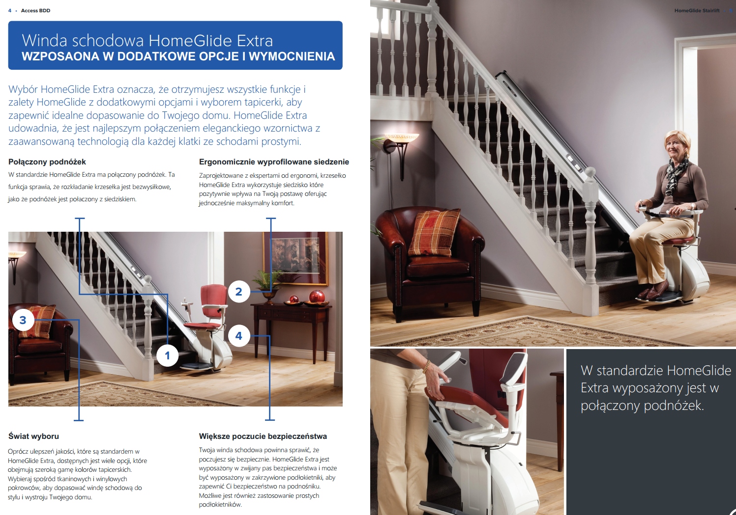 Линейка лестничных подъемников HomeGlide предлагает решение, отвечающее всем вашим требованиям и бюджету, связанным с прямой лестницей. В отличие от других лестничных подъемников, модели HomeGlide и HomeGlide Extra подходят для лестницы, а не для стены. Это позволяет выполнить быструю и простую установку с минимальным ущербом для дома.