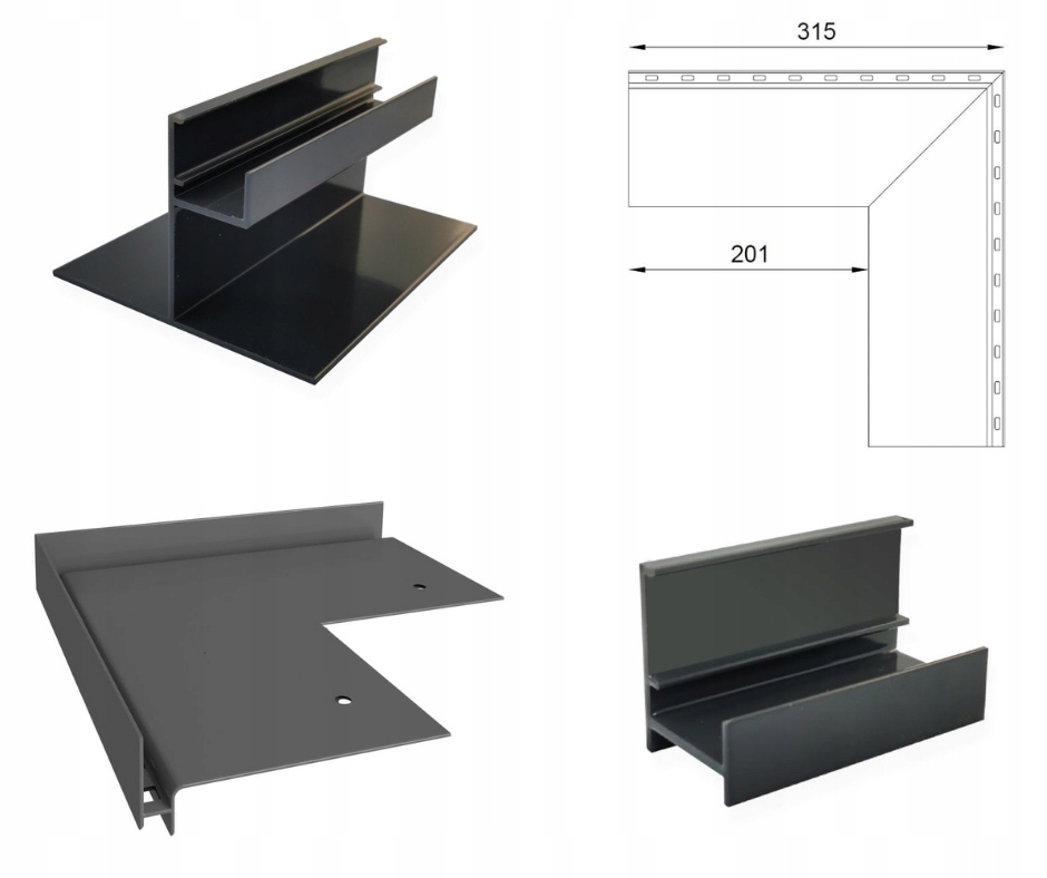 Для этих профилей используются только внешние углы с углом 90°. Мы не используем соединители и отбойники.