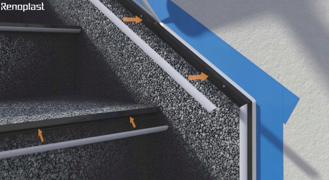 V-профиль LED Коричневый RAL 8019 Ренопласт предназначен для отделки лестниц из смолы типа «каменный ковер».