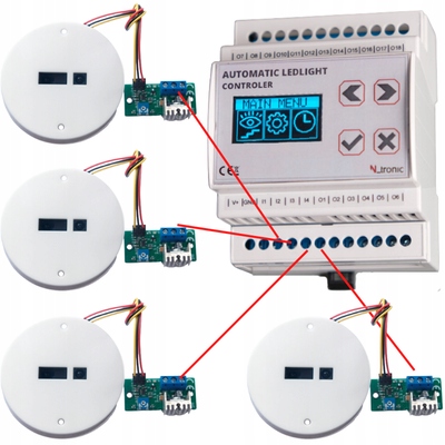 Контроллер имеет до 4 входов для датчиков движения. , что позволяет использовать устройство для эффективного управления светодиодным освещением на лестницах с лестничной площадки. Если у нас дома есть площадка на лестнице, мы можем освещать только часть лестницы в зависимости от того, поднимаемся мы или спускаемся.