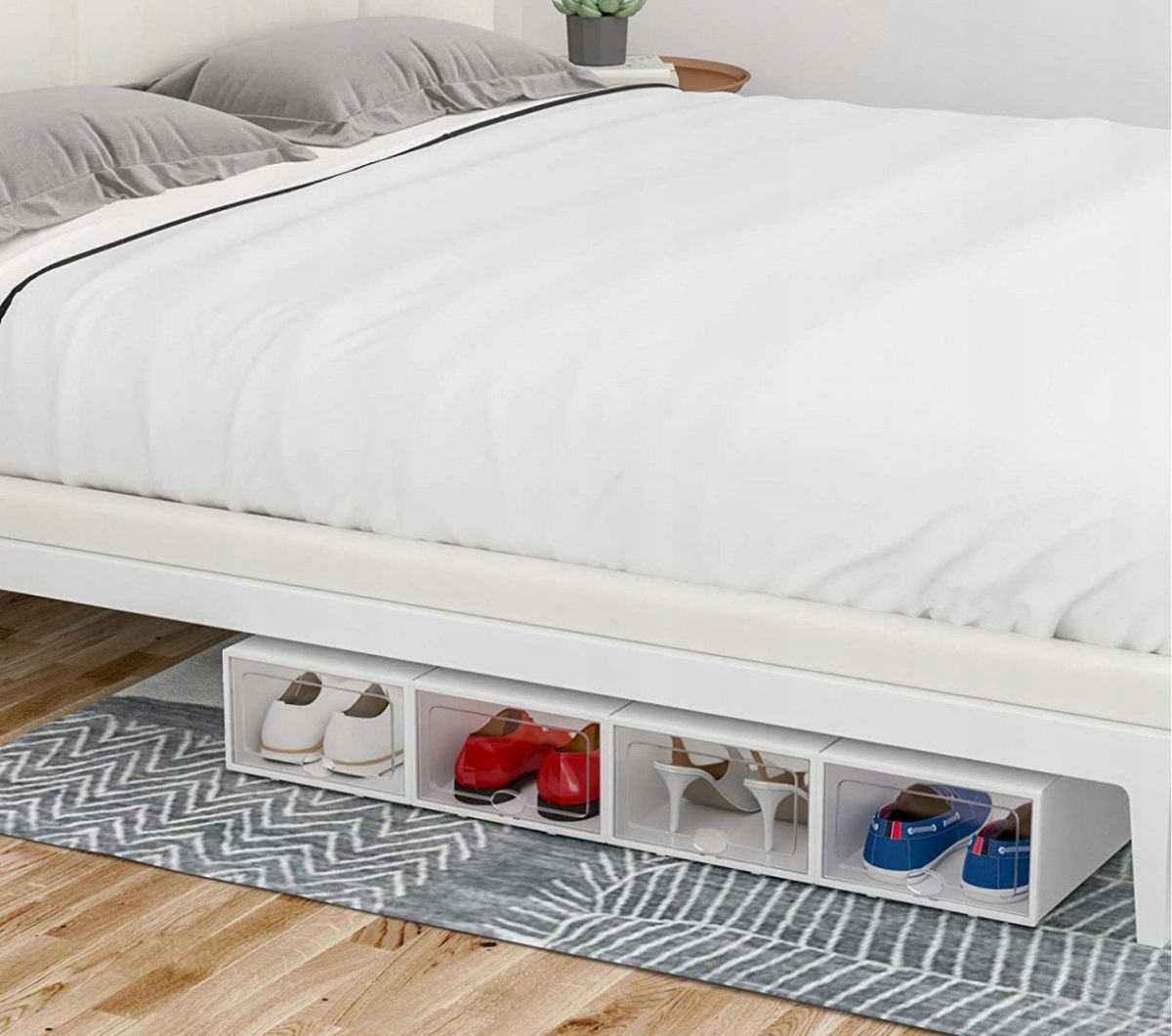 Между каждым пространством для хранения есть точки соединения, которые могут соединить окружающие организаторы обуви. Он может быть подключен вверх и вниз, влево и вправо. Этот дизайн может поддерживать стабильность всей обувной коробки, и вы можете организовать обувь на обуви в соответствии с вашими потребностями.
