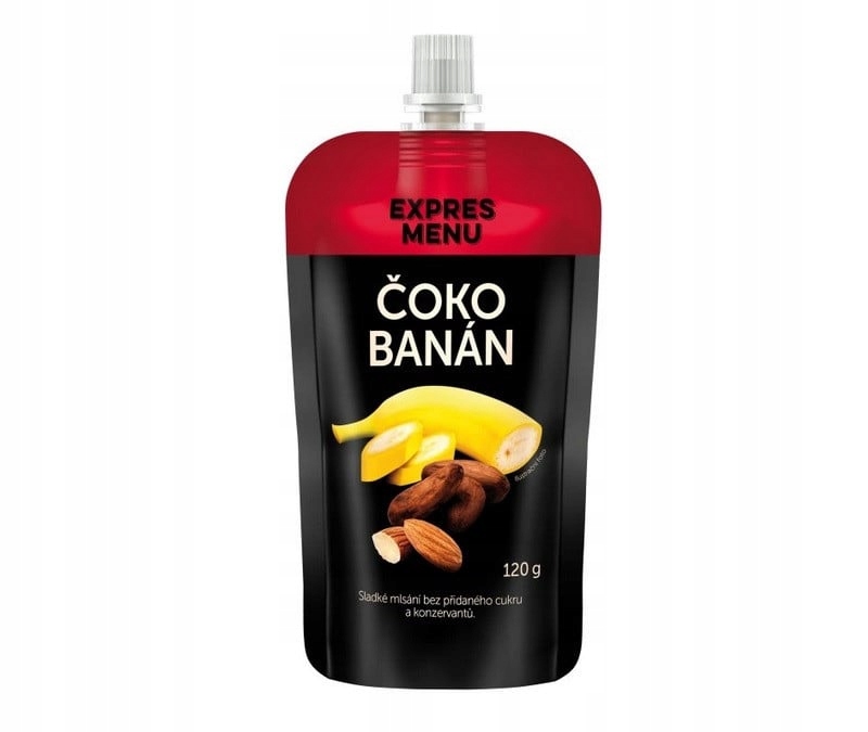Шоколад 120G Expres Menu мелко наземная паста из свежих бананов, целых бобов какао и миндаля. Сладкое измельчение без добавления сахара и консервантов. Это даст вам энергию, и вы можете раздавить без раскаяния. Ингредиенты: бананы (40%), вода, жареное зерно какао (10%), миндаль (8%), соль. Долговечность 36 месяцев с даты производства. Пищевые значения при 100 г: