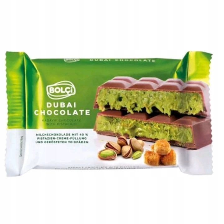 Шоколад Dubai Bolci – это уникальный молочный шоколад, который выделяется среди других сладостей своей уникальной начинкой. Внутри батончика находится сливочно-фисташковая масса слегка зеленоватого цвета, которая придает этому экзотическому лакомству неповторимый вкус и приятную текстуру. Сочетание сладости молочного шоколада с слегка хрустящими кусочками фисташек создает гармоничную композицию, которая порадует каждого любителя ореховых ноток. Этот продукт не только вкусен, но и отличается высоким качеством ингредиентов, что гарантирует насыщенные вкусовые ощущения. Dubai Chocolate Bolci представляет собой роскошный сладкий десерт с оттенком восточной свежести.