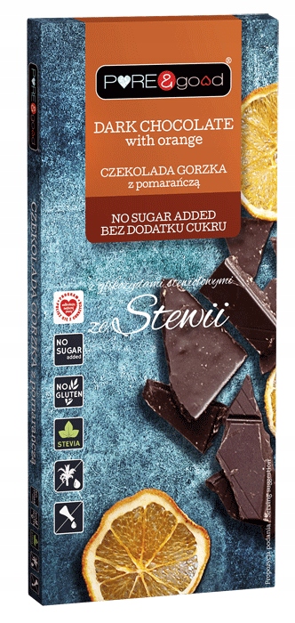 Отличный вкус темного шоколада PURE&good, обогащенного кусочками апельсина.