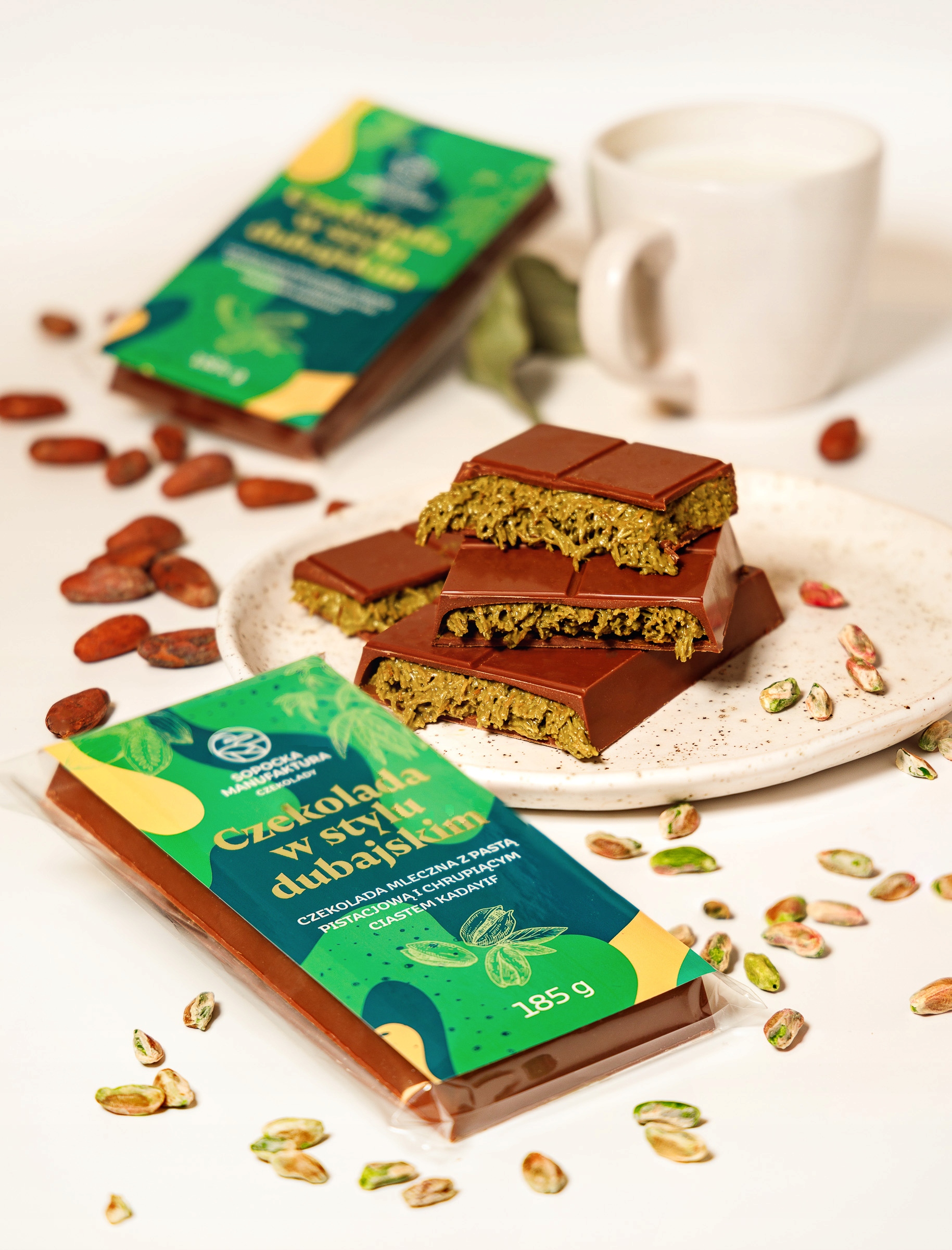 до 100 г роскошной начинки - ароматические жареные фисташки и золотые нити хрустящего пирога катафи - охваченный 85 г бархатного молочного шоколада из эквадорских зерновых национальных наносов. без консервантов, без компромиссов - чистое удовольствие