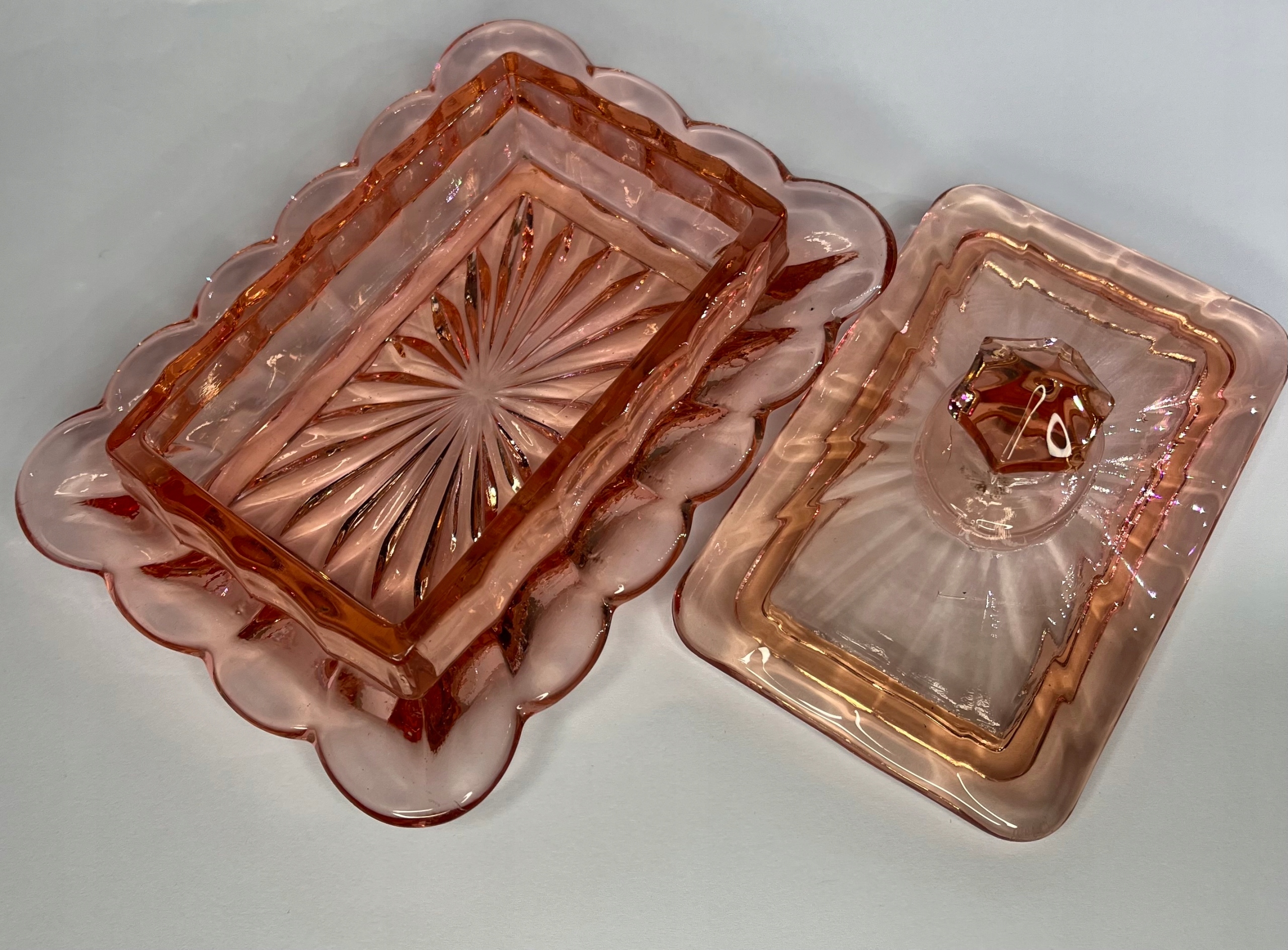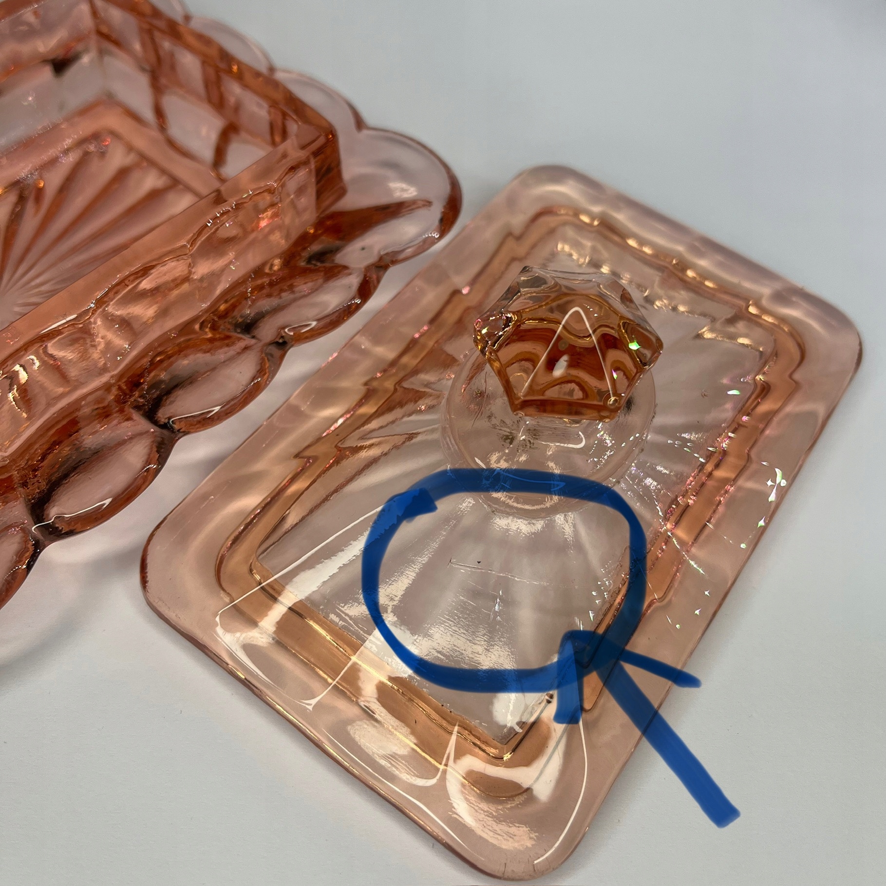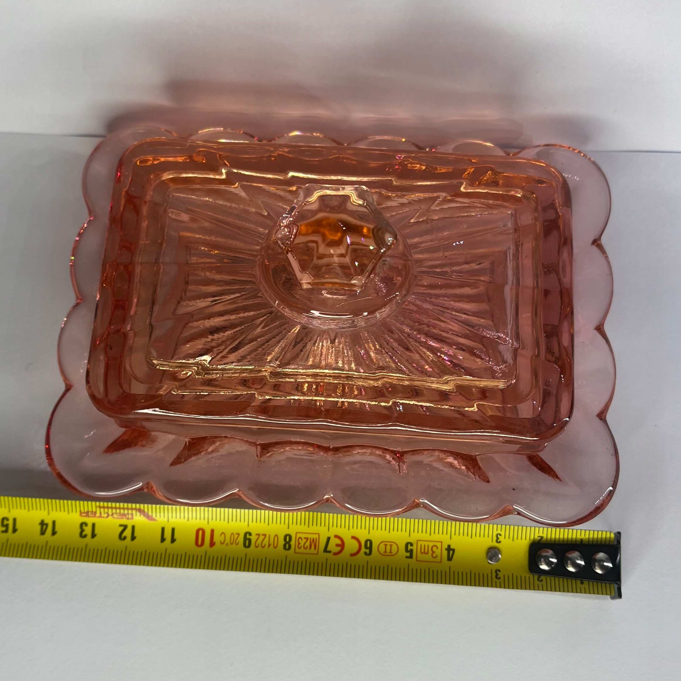 Для продажи я предлагаю элегантную шоколадную коробку из розового стекла в стиле ар -деко. Deco. Используйте подходящее для возраста предмета. с вечной эстетикой
