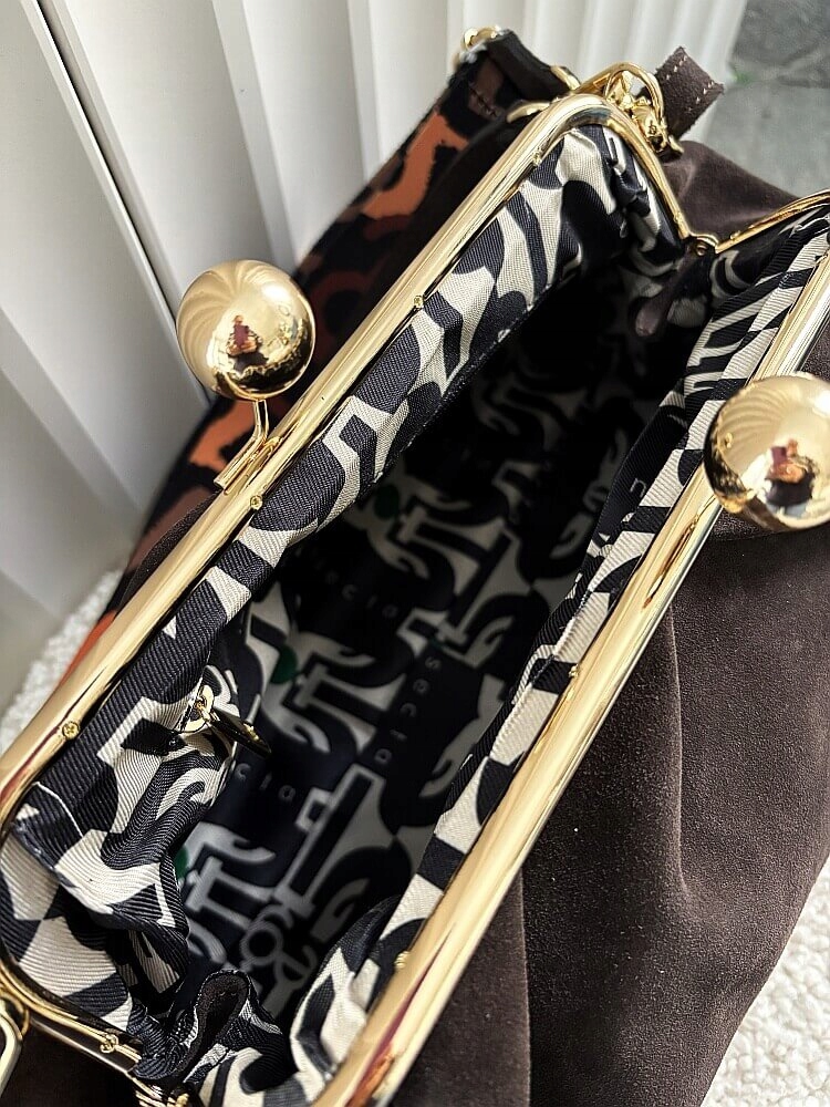 Вместительная сумка выполнена из качественной натуральной замши шоколадного цвета.