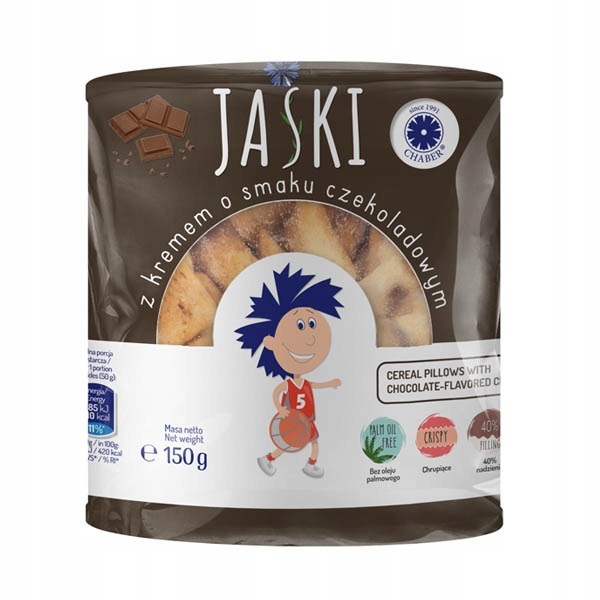 Хлопья для завтрака Jaśki со сливками со вкусом шоколада – продукт, полученный в процессе горячей экструзии крахмального сырья (пшеничной муки, кукурузной крупы, пшеничных отрубей, рисовой муки) с добавлением сахара, какао и разрыхлителя. В процессе яски начиняют кремом со вкусом шоколада.