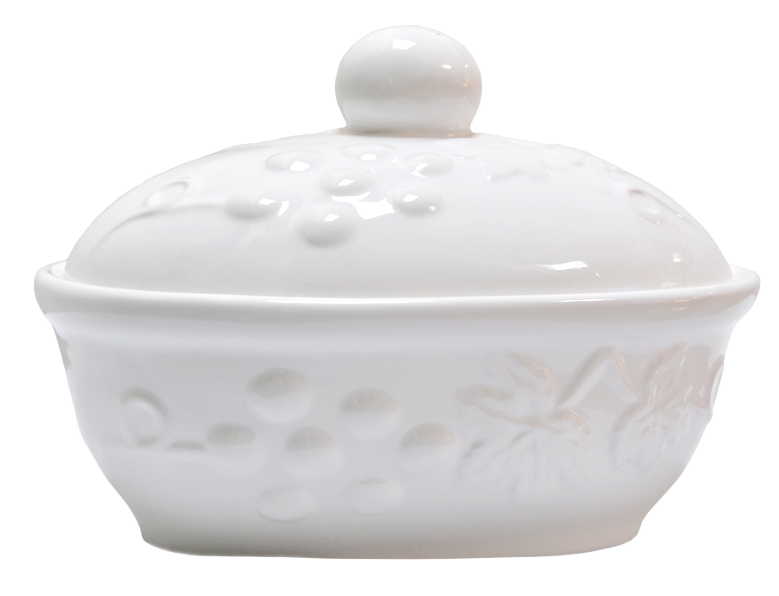 Предмет аукциона — белые керамические шоколадные коробки с выпуклым рисунком винограда.
