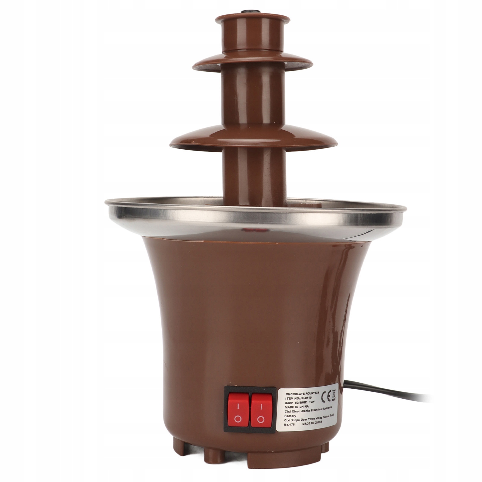 2. Контроль нагрева: Домашний шоколадный фонтан имеет функцию нагрева, температура может достигать 45°C. Рекомендуется использовать его непрерывно в течение 8-10 часов каждый раз.