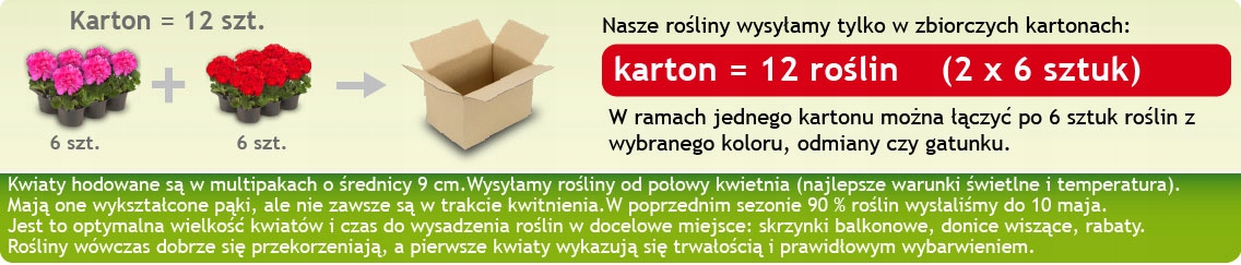 NASZE ROŚLINY WYSYŁAMY W ZBIORCZYCH KARTONACH. PROSIMY O ZAKUP PARZYSTEJ ILOŚCI 6 -PAKÓW.