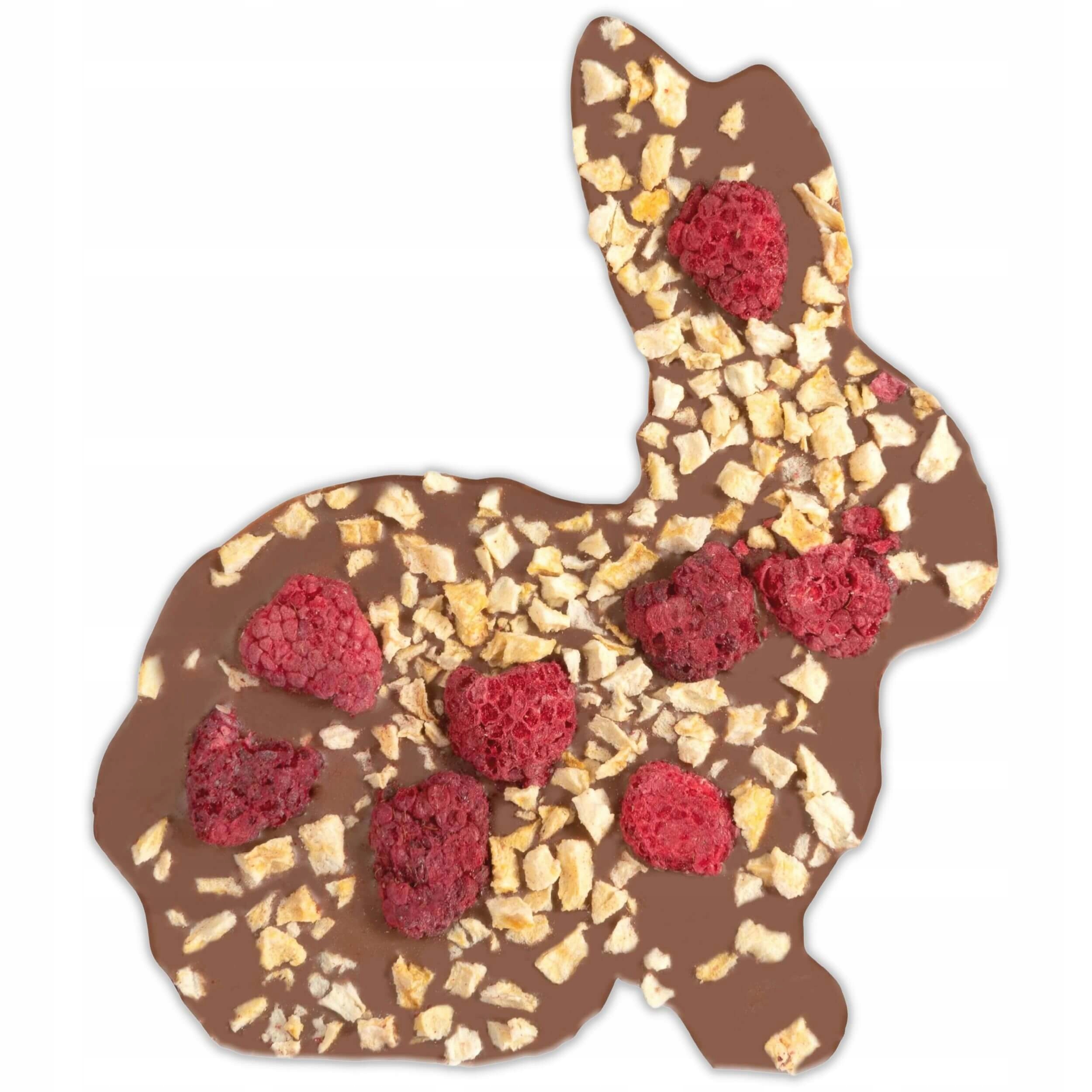 - Шоколад пасхальный в форме зайца 100 г< /б> . Состав: молочный шоколад, сахар, какао-масло, сухое молоко, какао тертое, эмульгатор: соевый лецитин, экстракт ванили, сублимированные фрукты (малина, персик). Информация для аллергиков может содержать молоко, сою, орехи, не содержит глютена.