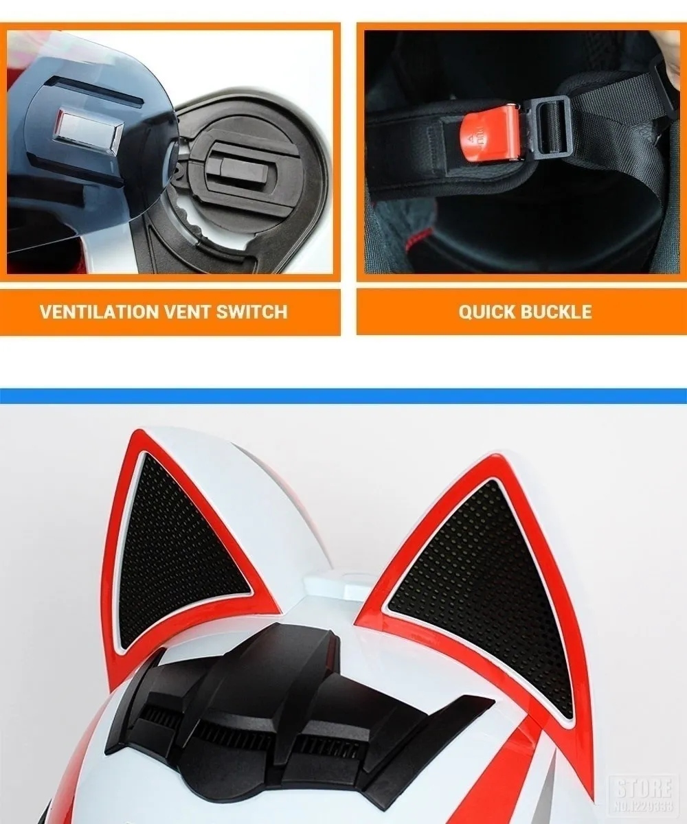 Шлем с полной крышкой, шлем с ушами кошки, женский шлем для мотокросса