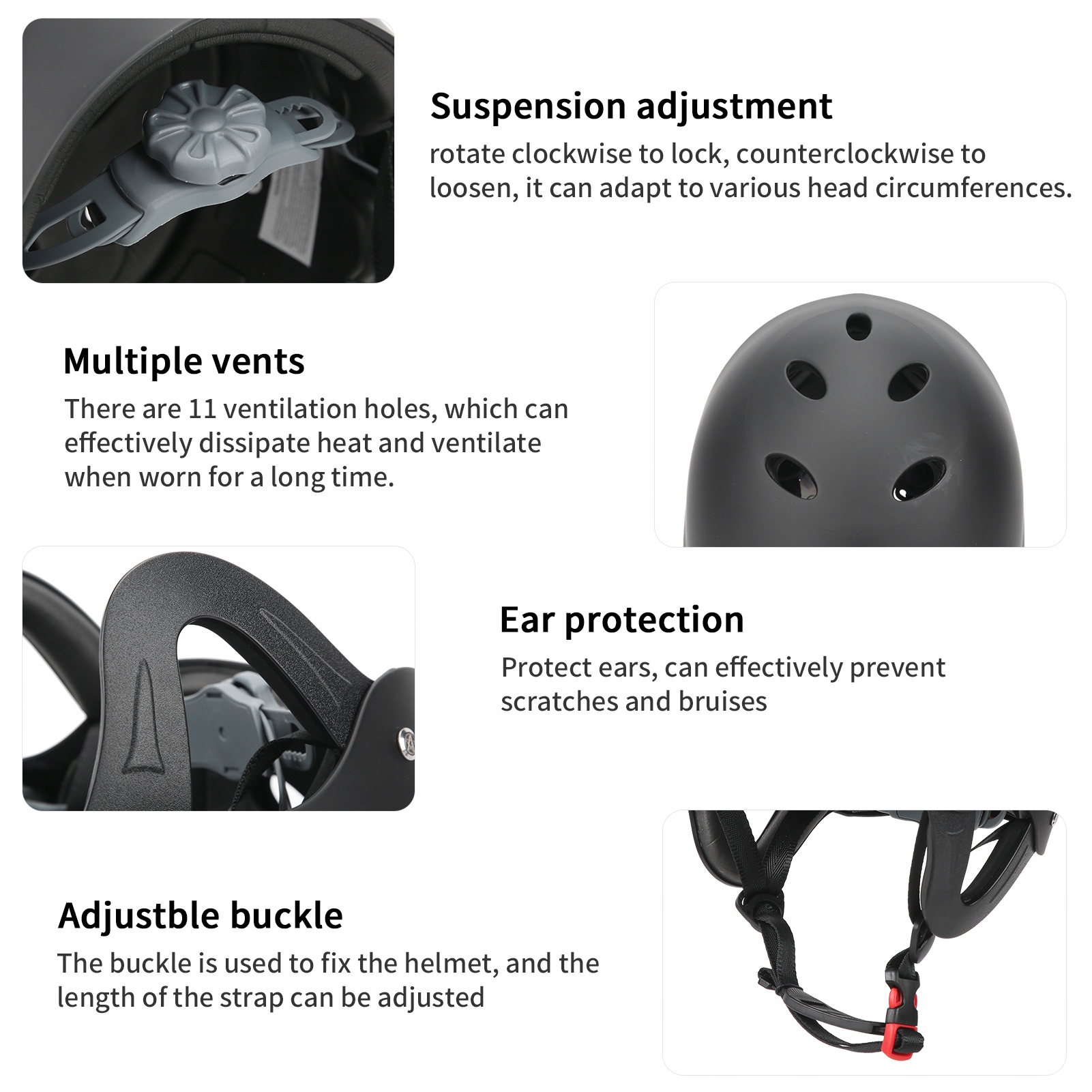 1. Этот шлем из АБС-пластика ударопрочен, устойчив к коррозии и износу. Это обеспечивает защиту органов слуха и регулировку подвески. 2. Этот водный шлем можно использовать для многих видов спорта, таких как водные виды спорта, езда на велосипеде и скалолазание. Имеет высокие практические характеристики. 3. Внутренняя оболочка шлема соединена пенопластом EVA с высоким содержанием пены. Кроме того, его легче и удобнее носить. 4. Этот уличный шлем можно вращать по часовой стрелке для фиксации и против часовой стрелки для расслабления. Его можно отрегулировать под разный обхват головы. 5. Этот водный шлем имеет 11 вентиляционных отверстий. Он может эффективно рассеивать тепло и вентилировать при длительном ношении. 6. Этот шлем из АБС-пластика имеет изысканный внешний вид и позволит вам с восхищением ласкать себя. Его матово-черный внешний вид наполнен чертами своего времени.