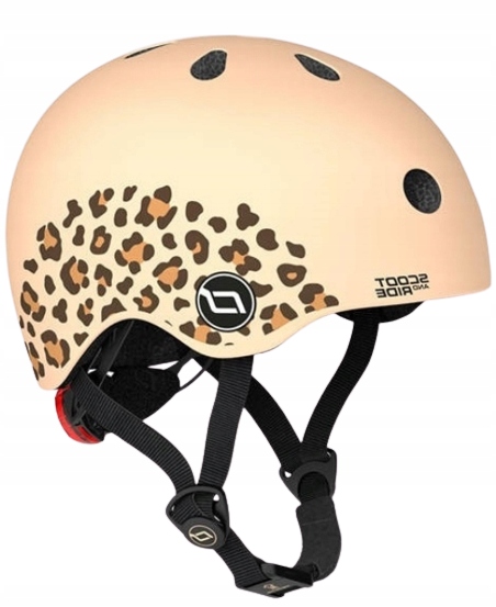 Шлем SCOOTANDRIDE XXS-S для детей 1-5 лет Leopard. Сверхлегкий (весит всего 240 г!), инновационный и стильный детский защитный шлем от австрийского бренда SCOOT&RIDE, который «растет» вместе с ребенком. Для детей от 1 года, на окружность головы от 45 до 51 см, регулируется ручкой сзади.